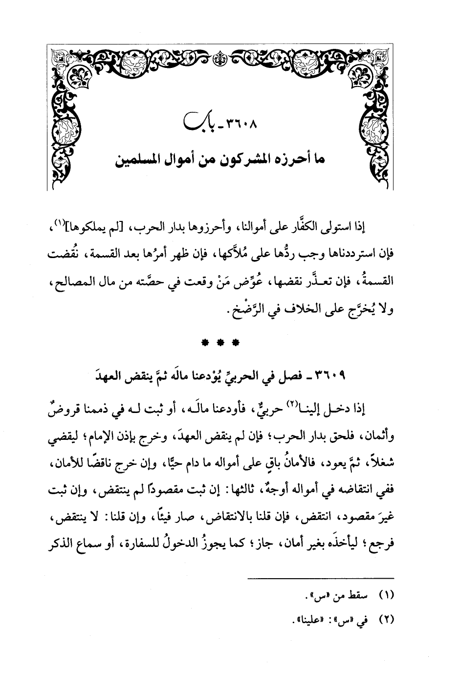 3609 - فصل في الحربيِّ يُوْدعنا مالَه لمَّ ينقض العهدَ