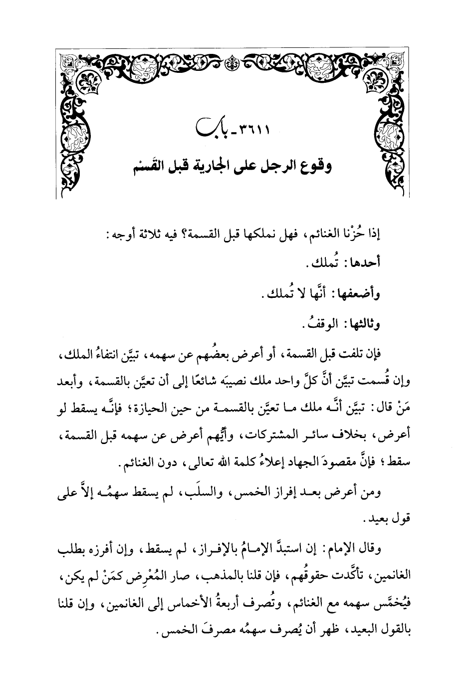 3611 - باب وقوع الرجل على الجارية قبل القَسْم