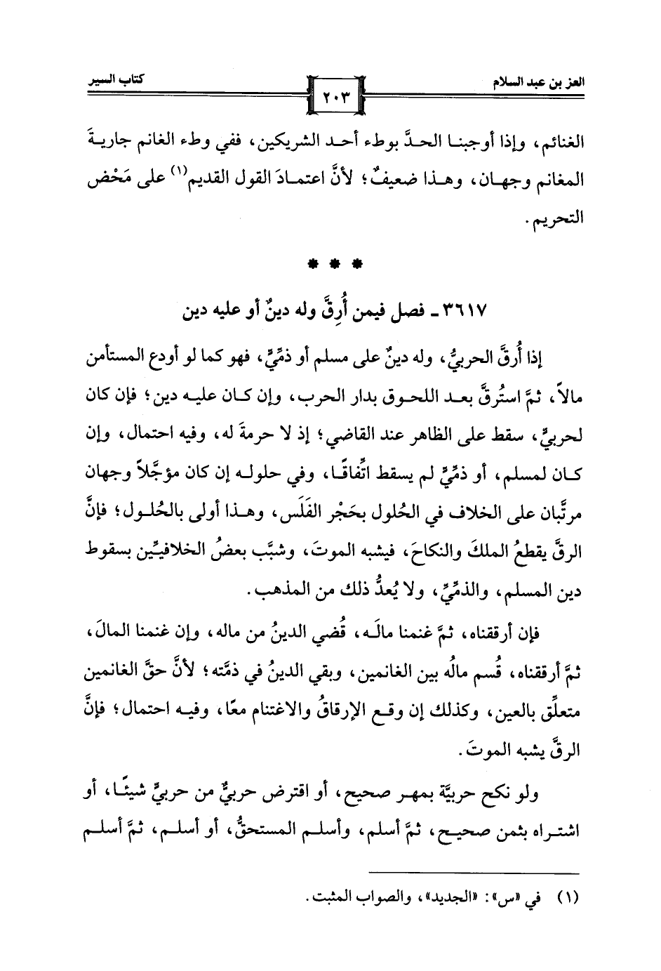 3617 - فصل فيمن أُرِقَّ وله دينٌ أو عليه دين