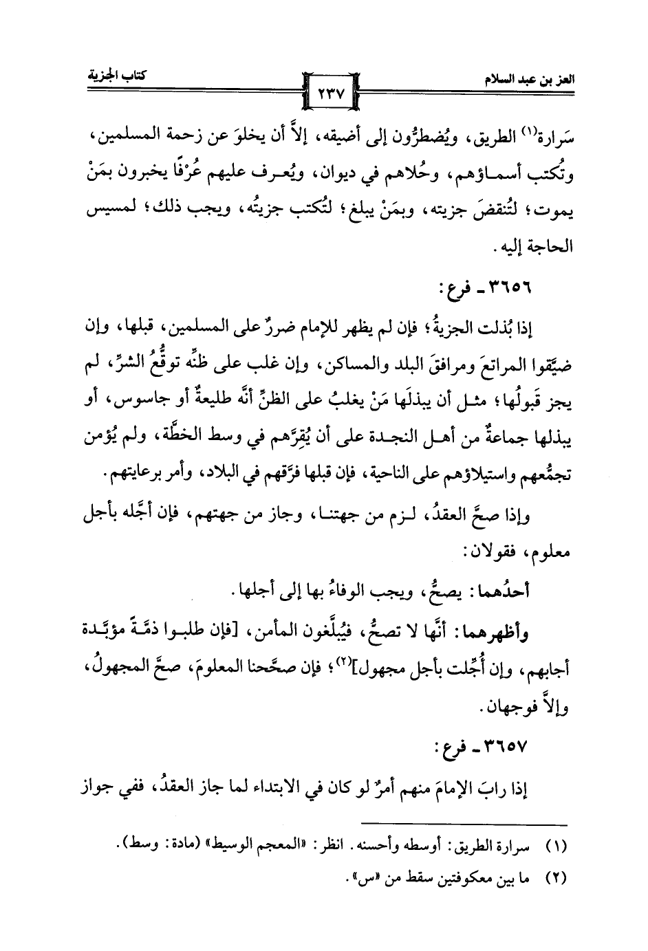 سَرارة (¬1) الطريق، ويُضطرُّون إلى أضيقه، إلَّا أن يخلوَ عن زحمة المسلمين، وتُكتب أسماؤهم، وحُلاهم في ديوان، ويُعرف عليهم عُرْفًا يخبرون بمَنْ يموت؛ لتُنقضَ جزيته، وبمَنْ يبلغ؛ لتُكتب جزيتُه، ويجب ذلك؛ لمسيس الحاجة إليه.