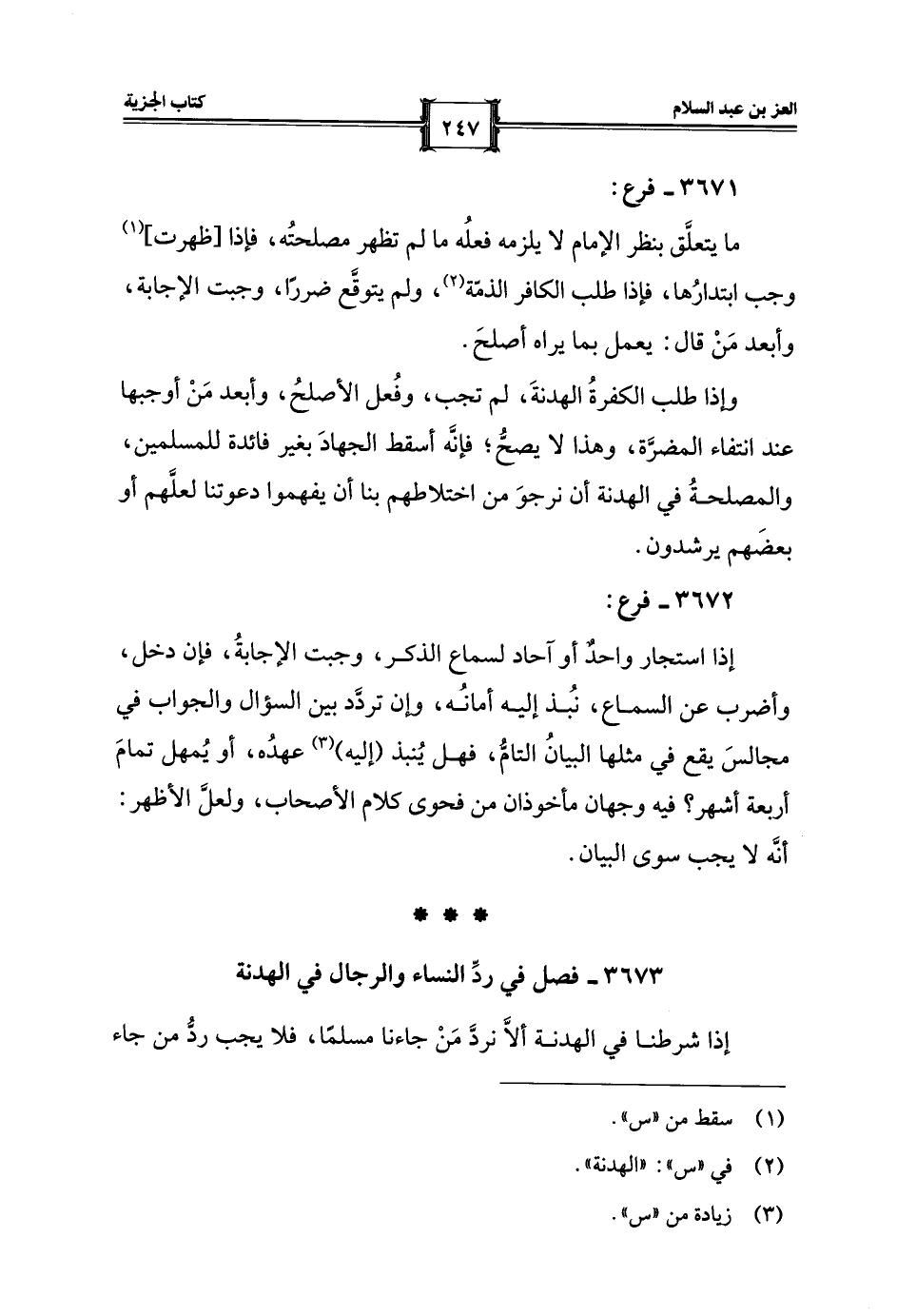3673 - فصل في ردِّ النساء والرجال في الهدنة