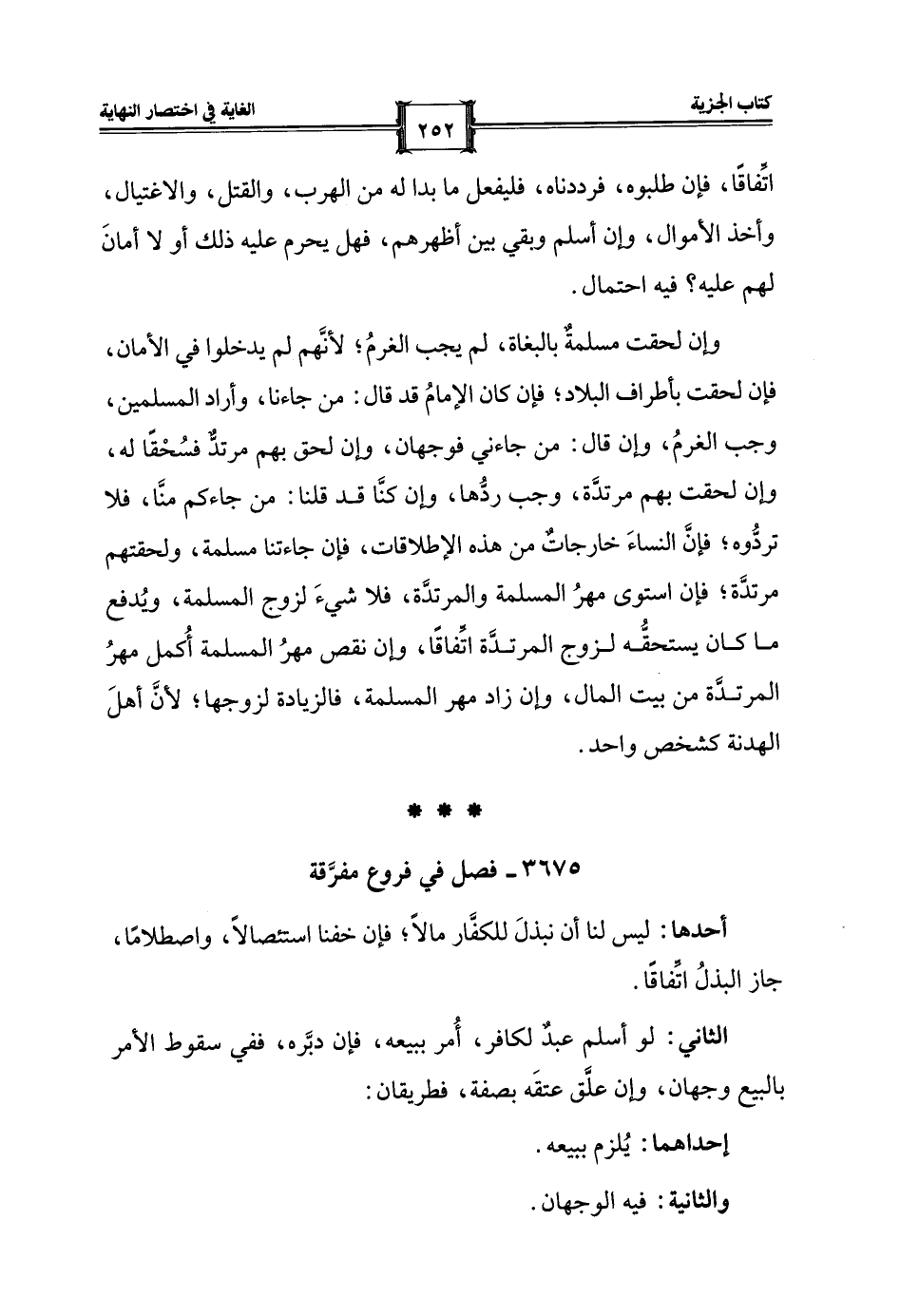 وإِن لحقت مسلمةٌ بالبغاة، لم يجب الغرمُ؟ لأنَّهم لم يدخلوا في الأمان، فإن لحقت بأطراف البلاد؛ فإن كان الإمامُ قد قال: من جاءنا، وأراد المسلمين، وجب الغرمُ، وإِن قال: من جاءني فوجهان، وإِن لحق بهم مرتدٌّ فسُحْقًا له، وإِن لحقت بهم مرتدَّة، وجب ردُّها، وإِن كنَّا قد قلنا: من جاءكم منَّا، فلا تردُّوه؛ فإنَّ النساءَ خارجاتٌ من هذه الإطلاقات، فإن جاءتنا مسلمة، ولحقتهم مرتدَّة؛ فإن استوى مهرُ المسلمة والمرتدَّة، فلا شيءَ لزوج المسلمة، ويُدفع ما كان يستحقُّه لزوج المرتدَّة اتِّفاقًا، وإِن نقص مهرُ المسلمة أُكمل مهرُ المرتدَّة من بيت المال، وإِن زاد مهر المسلمة، فالزيادة لزوجها؛ لأنَّ أهلَ الهدنة كشخص واحد.