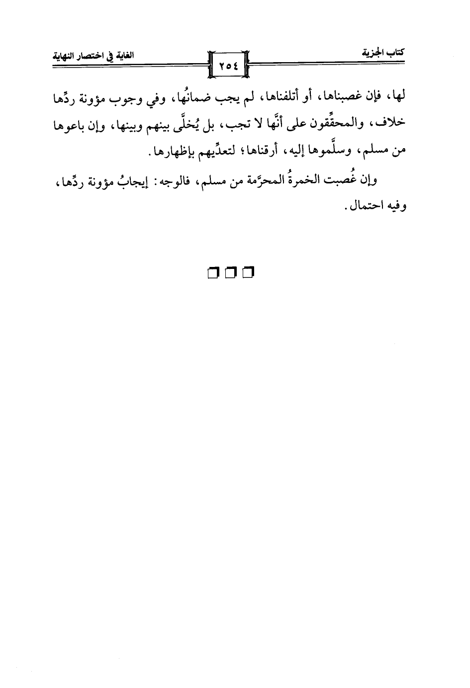 وإِن غُصبت الخمرةُ المحرَّمة من مسلم، فالوجه: إيجابُ مؤونة ردِّها، وفيه احتمال.