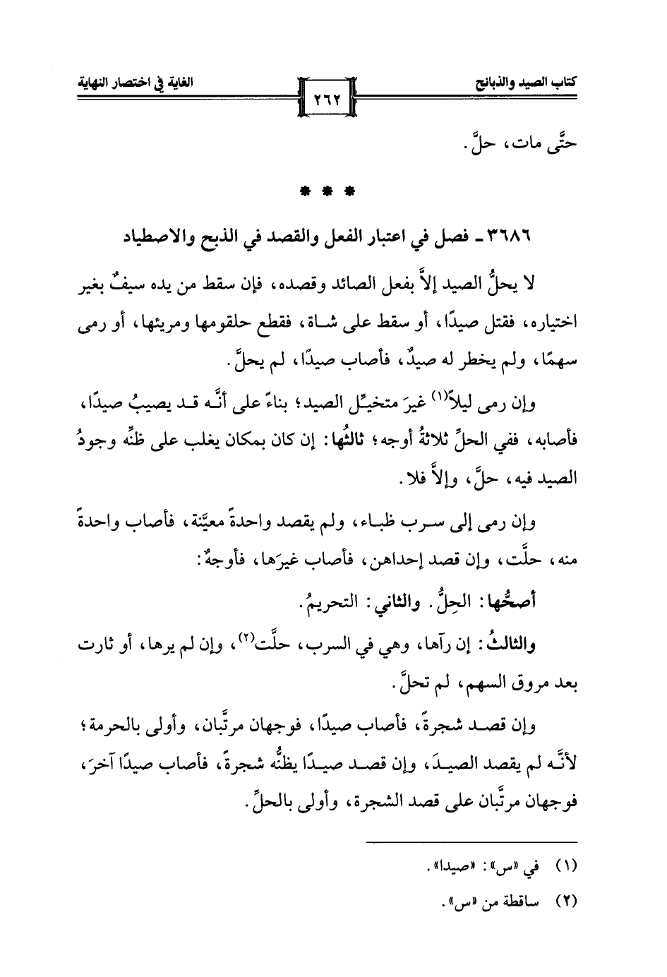 3686 - فصل في اعتبار الفعل والقصد في الذبح والاصطياد