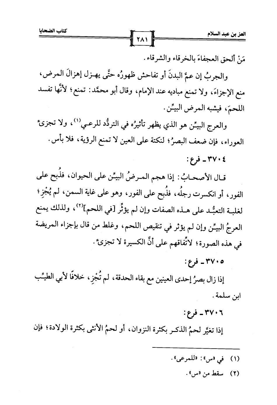 قال الأصحابُ: إذا هجم المرضُ البيِّن على الحيوان، فذُبح على الفور، أو انكسرت رجلُه، فذُبح على الفور، وهو على غاية السمن، لم يُجْزِ؛ لغلبة التعبُّد على هذه الصفات وإِن لم يؤثِّر [في اللحم] (¬2)، ولذلك يمنع العرجُ البيِّن وإِن لم يؤثر في تنقيص اللحم، وغلط من قال بإجزاء المريضة في هذه الصورة؛ لاتِّفاقهم على أنَّ الكسيرة لا تجزئ.