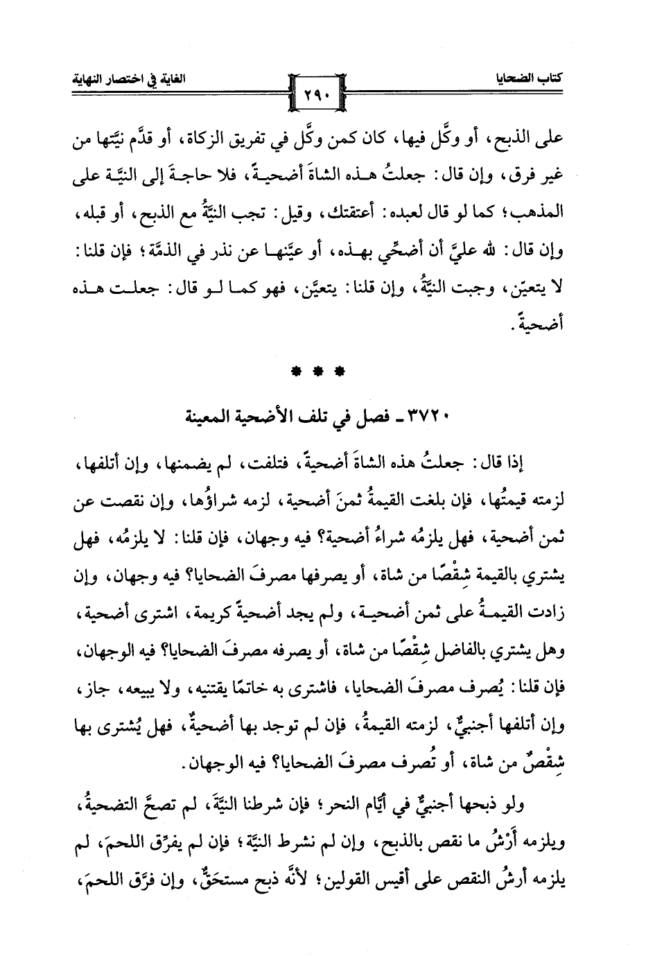على الذبح، أو وكَّل فيها، كان كمن وكَّل في تفريق الزكاة، أو قدَّم نيَّتها من غير فرق، وإِن قال: جعلتُ هذه الشاةَ أضحيةً، فلا حاجةَ إلى النيَّة على المذهب؛ كما لو قال لعبده: أعتقتك، وقيل: تجب النيَّةُ مع الذبح، أو قبله، وإِن قال: لله على أن أضحِّي بهذه، أو عيَّنها عن نذر في الذمَّه؛ فإن قلنا: لا يتعيّن، وجبت النيَّةُ، وإِن قلنا: يتعيَّن، فهو كما لو قال: جعلت هذه أضحيةً.