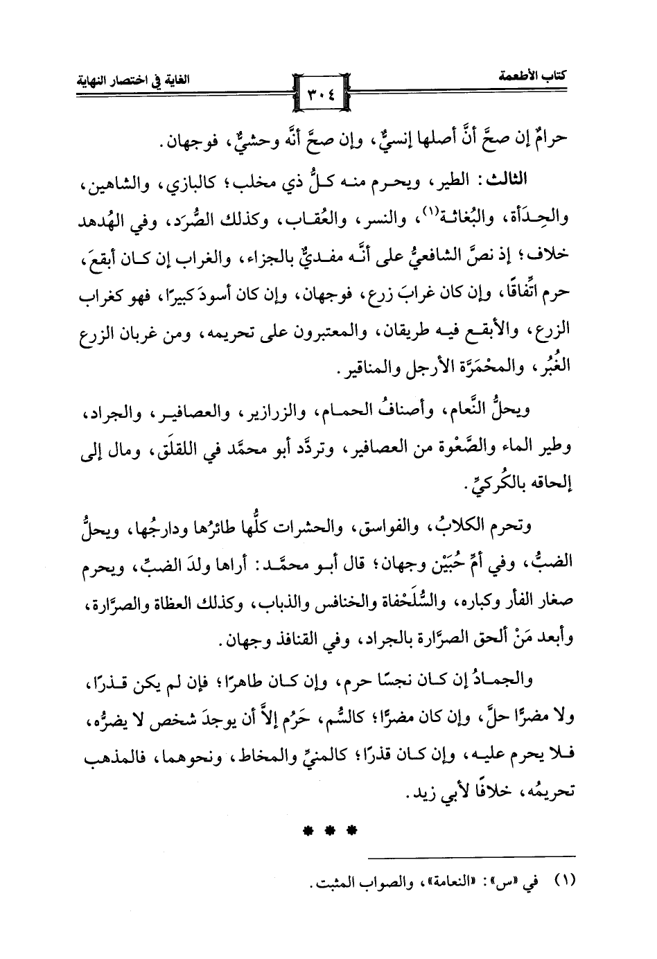 الثالث: الطير، ويحرم منه كلُّ ذي مخلب؛ كالبازي، والشاهين، والحِدَأة، والبُغاثة (¬1)، والنسر، والعُقاب، وكذلك الصُّرَد، وفي الهُدهد خلاف؛ إذ نصَّ الشافعيُّ على أنَّه مفديٌّ بالجزاء، والغراب إن كان أبقعَ، حرم اتِّفاقًا، وإن كان غرابَ زرع، فوجهان، وإن كان أسودَ كبيرًا، فهو كغراب الزرع، والأبقع فيه طريقان، والمعتبرون على تحريمه، ومن غربان الزرع الغُبُر، والمحْمرَّة الأرجل والمناقير.