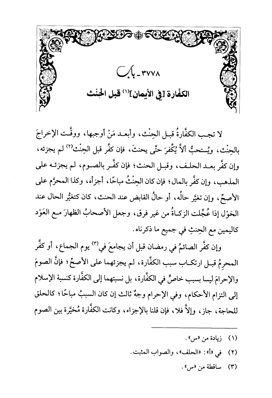 3778 - باب الكفَّارة [في الأيمان] (¬1) قبل الحِنْث