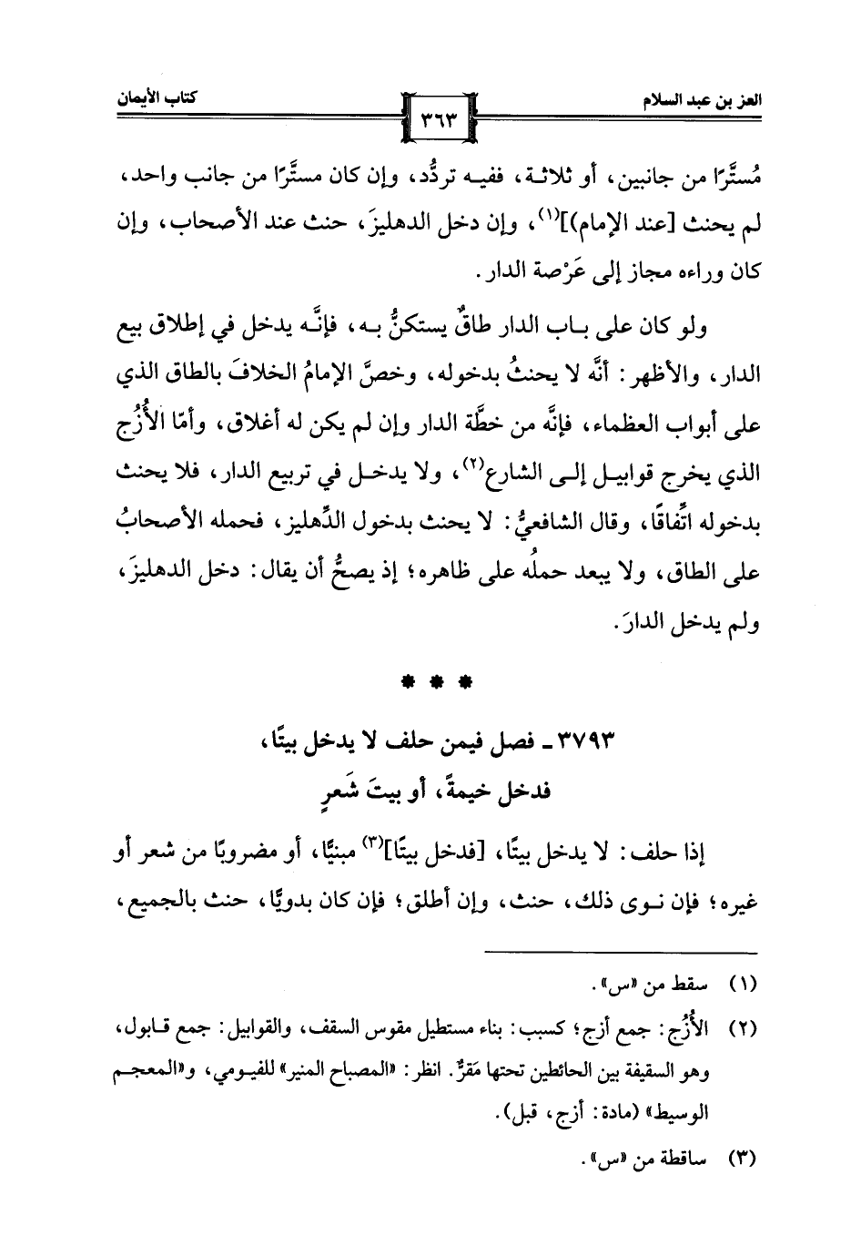 3793 - فصل فيمن حلف لا يدخل بيتًا، فدخل خيمةً، أو بيتَ شَعرٍ