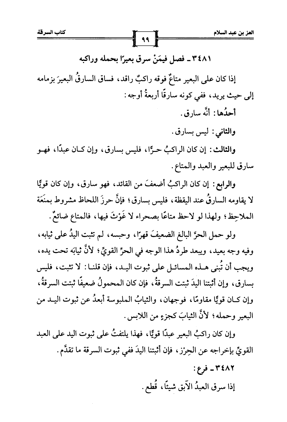 3481 - فصل فيمَنْ سرق بعيرًا بحمله وراكبه