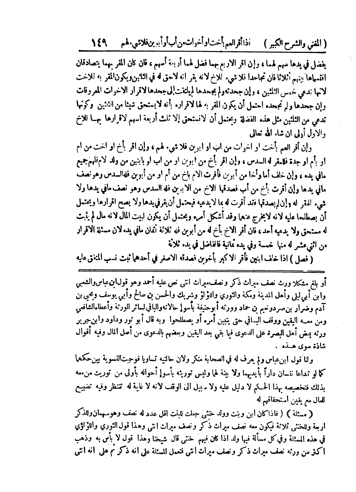 ولنا قول ابن عباس ولم يعرف له في الصحابة منكر ولأن حالتيه تساويا فوجبت التسوية بين حكمهما كما لو تداعا نفسان داراً بأيديهما ولا بينة لهما وليس توريثه بأسوإ أحواله بأولى من توريث من معه بذلك فتخصيصه بهذا الحكم لا دليل عليه ولا سبيل إلى الوقف لأنه لا غاية له تنتظر وفيه تضييع للمال مع يقين استحقاقهم له