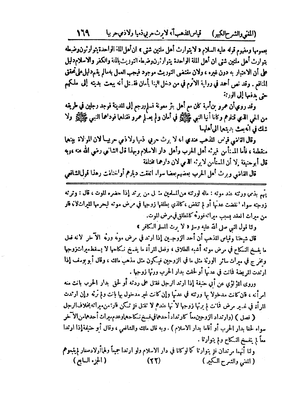 ولنا قول النبي صلى الله عليه وسلم " لا يرث المسلم الكافر " قال شيخنا وقياس المذهب أن أحد الزوجين إذا ارتد في مرض موته ورثه الآخر لأنه فعل ما يفسخ النكاح في مرض موته أشبه الطلاق، وفعل المرأة ما يفسخ نكاحها لا يسقط ميراث زوجها ويخرج في ميراث سائر الورثة مثل ما في الزوجين فيكون مثل مذهب مالك، وقال أبو يوسف إذا ارتدت المريضة فماتت في عدتها أو لحقت بدار الحرب ورثها زوجها.