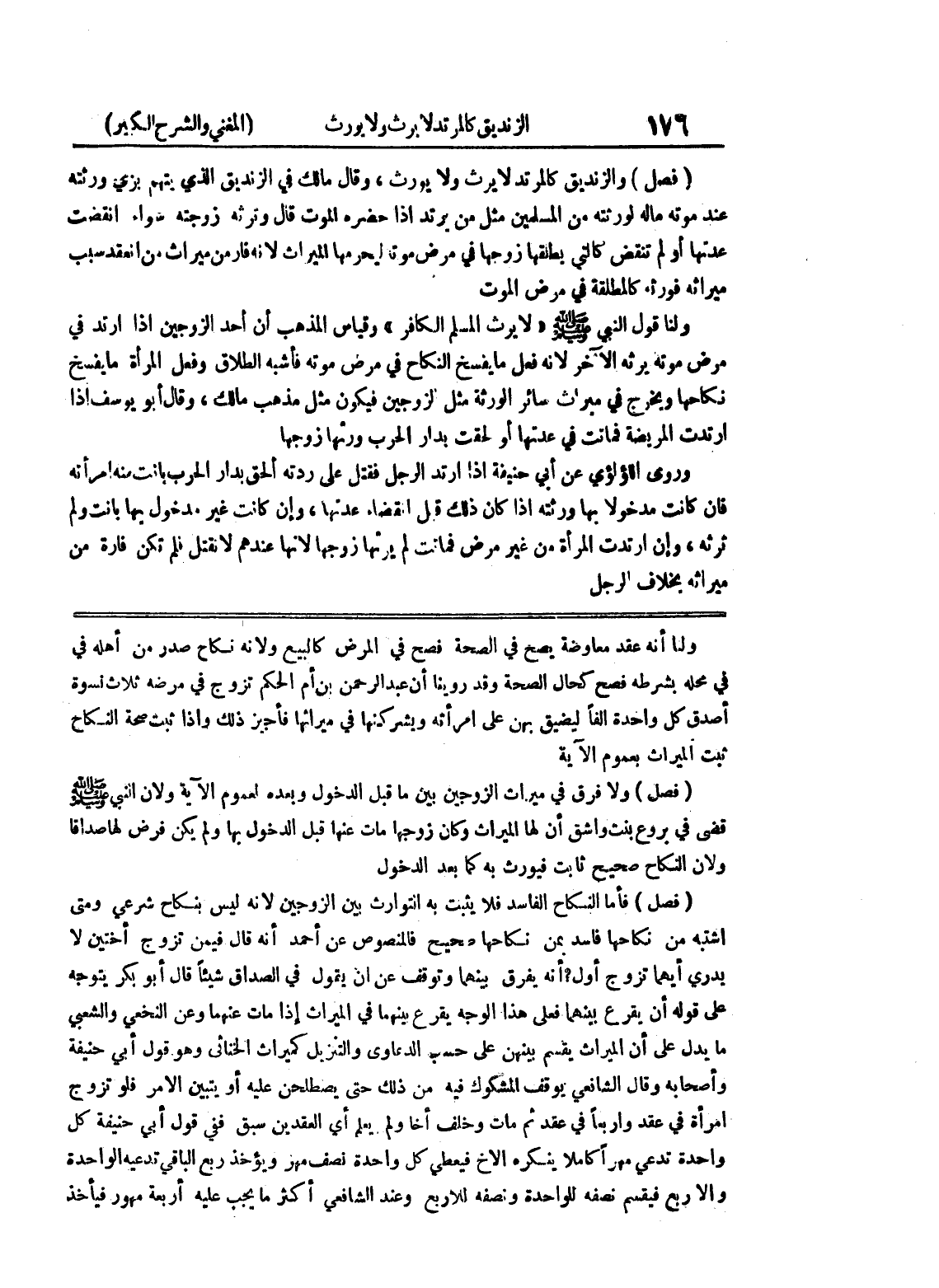ولنا أنه عقد معاوضة يصح في الصحة فصح في المرض كالبيع ولأنه نكاح صدر من أهله في في محله بشرطه فصح كحال الصحة وقد روينا أن عبد الرحمن بن أم الحكم تزوج في مرضه ثلاث نسوة أصدق كل واحدة ألفاً ليضيق بهن على امرأته ويشركنها في ميراثها فأجيز ذلك وإذا ثبت صحة النكاح ثبت الميراث بعموم الآية (فصل) ولا فرق في ميراث الزوجين بين ما قبل الدخول وبعده لعموم الآية ولأن النبي صلى الله عليه وسلم قضى في بروع بنت واشق أن لها الميراث وكان زوجها مات عنها قبل الدخول بها ولم يكن فرض لها صداقا ولأن النكاح صحيح ثابت فيورث به كما بعد الدخول (فصل) فأما النكاح الفاسد فلا يثبت به التوارث بين الزوجين لأنه ليس بنكاح شرعي ومتى اشتبه من نكاحها فاسد بمن نكاحها صحيح فالمنصوص عن أحمد أنه قال فيمن تزوج أختين لا يدري أيهما تزوج أول؟ أنه يفرق بينهما وتوقف عن أن يقول في الصداق شيئاً قال أبو بكر يتوجه