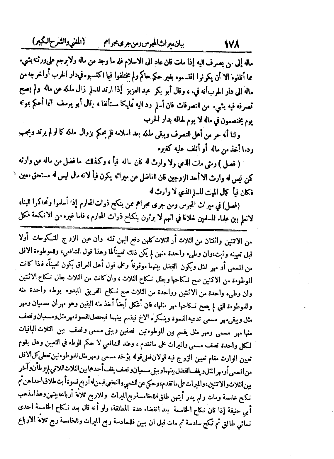 من الاثنتين واثنتان من الثلاث أو الثلاث كلهن دفع اليهن ثلاثه وإن عين الزوج المنكوحات أولا قبل تعيينه وثبت، وإن وطئ واحدة منهن لم يكن ذلك تعييناً لها وهذا قول الشافعي، وللموطوءة الأقل من المسمى أو مهر المثل ويكون الفضل بينهما موقوفاً وعلى قول أهل العراق يكون تعييناً، فإذا كانت الموطوءة من الاثنتين صح نكاحها وبطل نكاح الثلاث، وان كانت من الثلاث بطل نكاح الاثنتين وإن وطئ واحدة من الاثنتين وواحدة من الثلاث صح نكاح الفريق المبدوء بوطئ واحدة منه وللموطوءة التي لم يصح نكاحها مهر مثلها، فإن أشكل أيضاً أخذ منه اليقين وهو مهران مسميان ومهر مثل ويبقى مهر مسمى تدعيه النسوة وينكره الأخ فيقسم بينهما فيحصل للنسوة مهر مثل ومسميان ونصف منها مهر مسمى ومهر مثل يقسم بين الموطوءتين نصفين ويبقى مسمى ونصف بين الثلاث الباقيات لكل واحدة نصف مسمى والميراث على ما تقدم، وعند الشافعي لا حكم للوطئ في التعيين وهل يقوم تعيين الوارث مقام تعيين الزوج فيه قولان فعلى قوله يؤخذ مسمى ومهر مثل للموطوءتين تعطى كل الأقل من المسمى أو مهر المثل ويقف الفضل بينهما ويبقى مسميان ونصف يقف أحدهما بين الثلاث اللاتي لم يوطأن وآخر بين الثلاث والاثنتين، والميراث على ما تقدم، وحكي عن الشعبي والنخعي فيمن له أربع نسوة أبت طلاق إحداهن ثم نكح خامسة ومات ولم يدر أيتهن طلق فللخامسة ربع الميراث وللأربع ثلاثة أرباعه بينهن وهذا مذهب أبي حنيفة إذا كان نكاح الخامسة بعد انقضاء عدة المطلقة، ولو أنه قال بعد نكاح الخامسة إحدى نسائي طالق ثم نكح سادسة ثم مات قبل أن يبين فللسادسة ربع الميراث وللخامسة ربع ثلاثة الأرباع