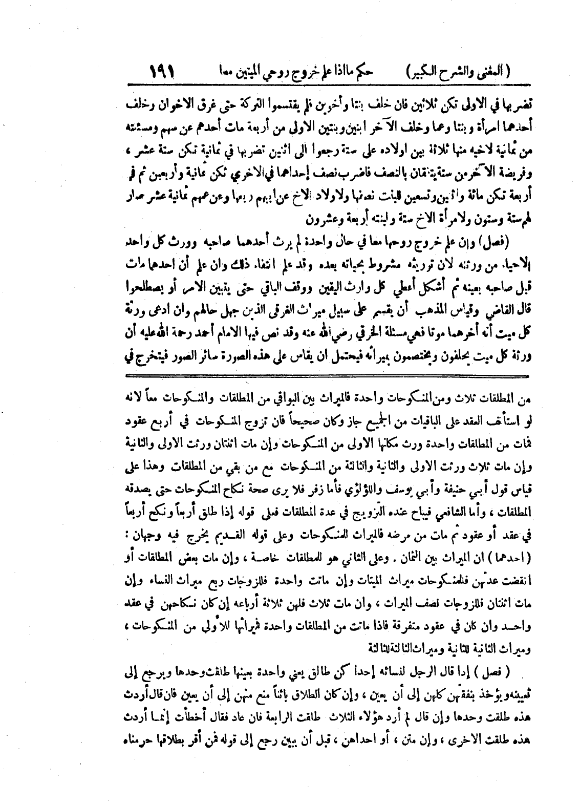 وعلى الثاني هو للمطلقات خاصة، وإن مات بعض المطلقات أو انقضت عدتهن فللمنكوحات ميراث الميتات وإن ماتت واحدة فللزوجات ربع ميراث النساء وإن مات اثنتان فللزوجات نصف الميراث، وإن مات ثلاث فلهن ثلاثة أرباعه إن كان نكاحهن في عقد واحد وإن كان في عقود متفرقة فإذا ماتت من المطلقات واحدة فميراثها للأولى من المنكوحات، وميراث الثانية للثانية وميراث الثالثة للثالثة (فصل) إذا قال الرجل لنسائه إحداكن طالق يعني واحدة بعينها طلقت وحدها ويرجع إلى تعيينه ويؤخذ بنفقهن كلهن إلى أن يعين، وإن كان الطلاق بائناً منع منهن إلى أن يعين فإن قال أردت هذه طلقت وحدها وإن قال لم أرد هؤلاء الثلاث طلقت الرابعة فان عاد فقال أخطأت إنما أردت هذه طلقت الأخرى، وإن متن، أو إحداهن، قبل أن يبين رجع إلى قوله فمن أقر بطلاقها حرمناه