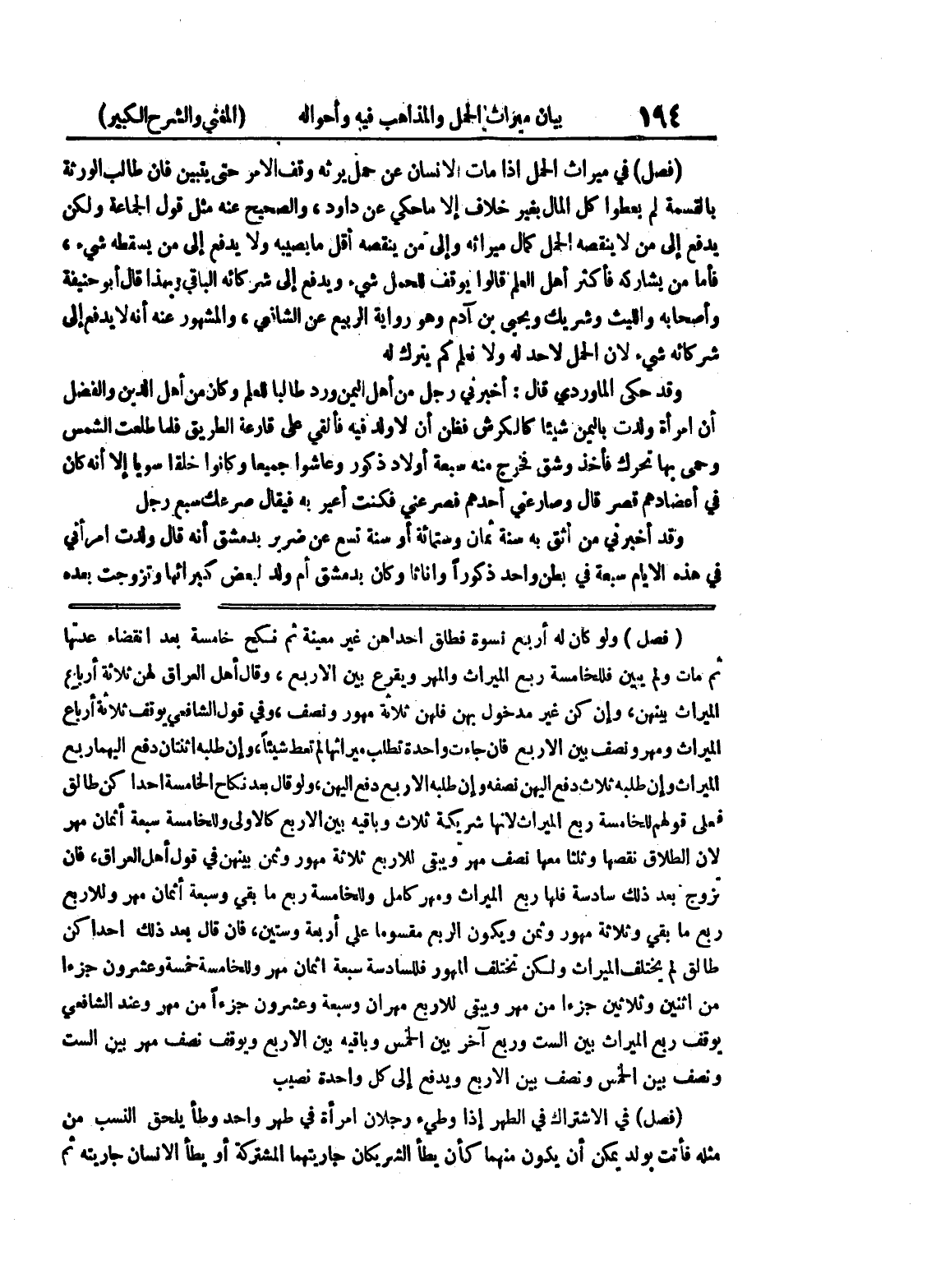 (فصل) ولو كان له أربع نسوة فطلق إحداهن غير معينة ثم نكح خامسة بعد انقضاء عدتها ثم مات ولم يبين فللخامسة ربع الميراث والمهر ويقرع بين الأربع، وقال أهل العراق لهن ثلاثة أرباع الميراث بينهن، وإن كن غير مدخول بهن فلهن ثلاثة مهور ونصف، وفي قول الشافعي يوقف ثلاثة أرباع الميراث ومهر ونصف بين الأربع فإن جاءت واحدة تطلب ميراثها لم تعط شيئاً، وإن طلبه اثنتان دفع إليهما ربع الميراث وإن طلبه ثلاث دفع إليهن نصفه وإن طلبه الأربع دفع إليهن، ولو قال بعد نكاح الخامسة إحداكن طالق فعلى قولهم للخامسة ربع الميراث لأنها شريكة ثلاث وباقيه بين الأربع كالأولى وللخامسة سبعة أثمان مهر لأن الطلاق نقصها وثلثا معها نصف مهر ويبقى للأربع ثلاثة مهور وثمن بينهن في قول أهل العراق، فإن تزوج بعد ذلك سادسة فلها ربع الميراث ومهر كامل وللخامسة ربع ما بقي وسبعة أثمان مهر وللأربع ربع ما بقي وثلاثة مهور وثمن ويكون الربع مقسوما على أربعة وستين، فإن قال بعد ذلك إحداكن طالق لم يختلف الميراث ولكن تختلف المهور فللسادسة سبعة أثمان مهر وللخامسة خمسة وعشرون جزءاً من اثنين وثلاثين جزءاً من مهر ويبقى للأربع مهران وسبعة وعشرون جزءاً من مهر وعند الشافعي يوقف ربع الميراث بين الست وربع آخر بين الخمس وباقيه بين الأربع ويوقف نصف مهر بين الست ونصف بين الخمس ونصف بين الأربع ويدفع إلى كل واحدة نصيب (فصل) في الاشتراك في الطهر إذا وطئ رجلان امرأة في طهر واحد وطأ يلحق النسب من مثله فأتت بولد يمكن أن يكون منهما كأن يطأ الشريكان جاريتهما المشتركة أو يطأ الانسان جاريته ثم