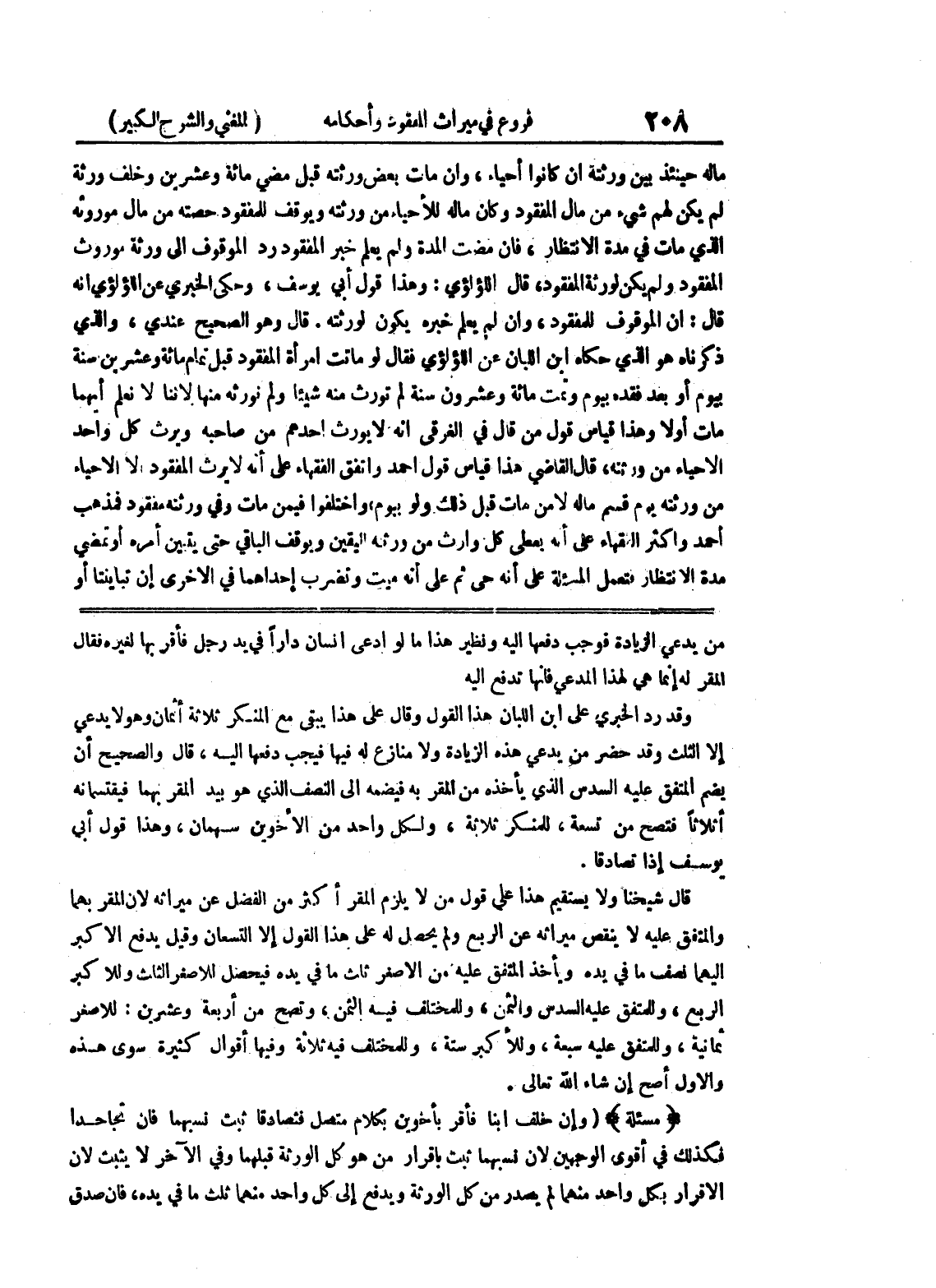 من يدعي الزيادة فوجب دفعها إليه ونظير هذا ما لو ادعى إنسان داراً في يد رجل فأقر بها لغيره فقال المقر له إنما هي لهذا المدعي فإنها تدفع إليه وقد رد الخبري على ابن اللبان هذا القول وقال على هذا يبقى مع المنكر ثلاثة أثمان وهو لا يدعي إلآ الثلث وقد حضر من يدعي هذه الزيادة ولا منازع له فيها فيجب دفعها إليه، قال والصحيح أن يضم المتفق عليه السدس الذي يأخذه من المقر به فيضمه إلى النصف الذي هو بيد المقر بهما فيقتسمانه أثلاثاً فتصح من تسعة، للمنكر ثلاثة، ولكل واحد من الأخوين سهمان، وهذا قول أبي يوسف إذا تصادقا.