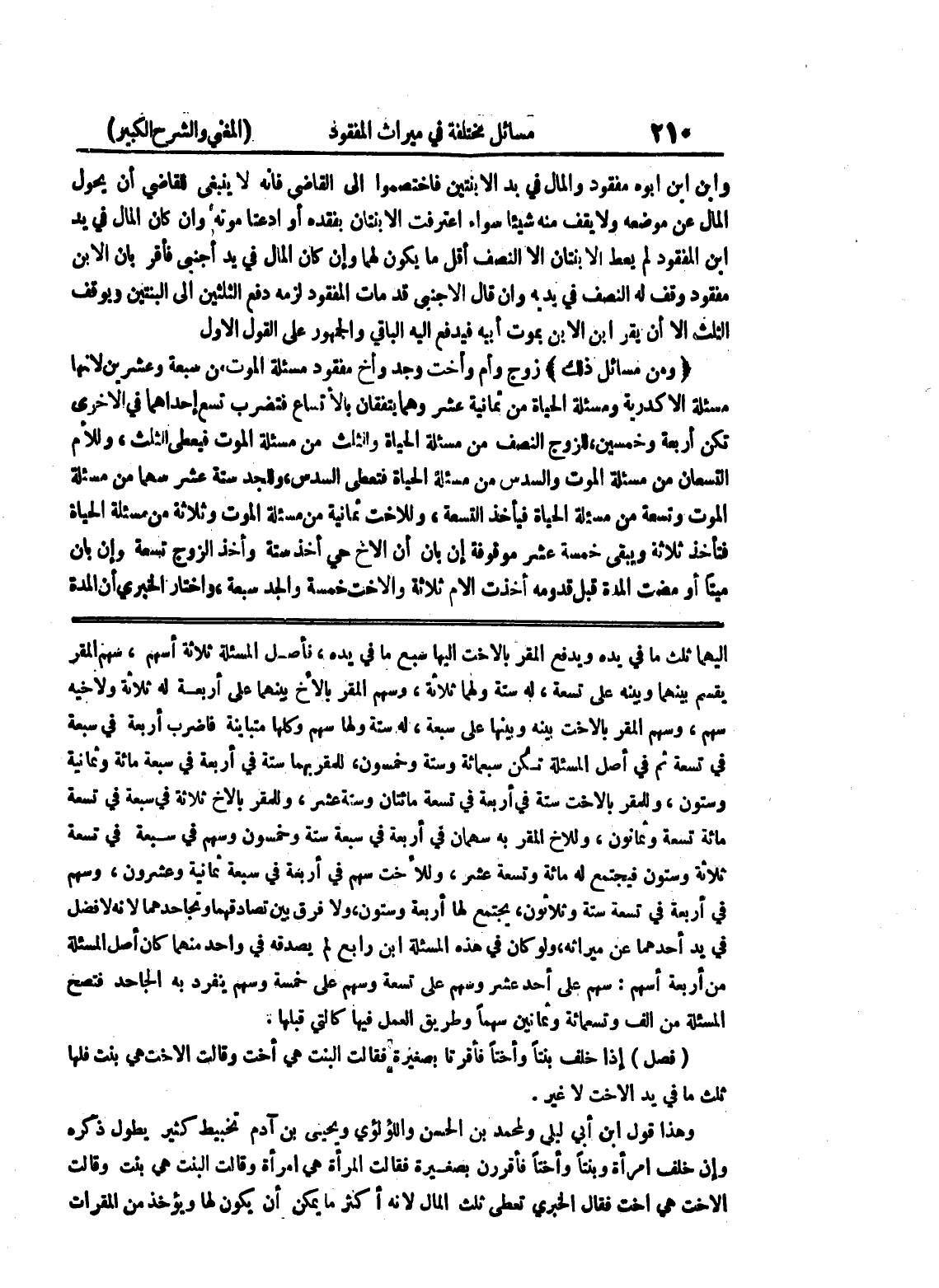 إليهما ثلث ما في يده ويدفع المقر بالأخت إليها سبع ما في يده، فأصل المسألة ثلاثة أسهم، سهم المقر يقسم بينهما وبينه على تسعة، له ستة ولهما ثلاثة، وسهم المقر بالاخ بينهما على أربعة له ثلاثة ولاخيه سهم، وسهم المقر بالاخت بينه وبينها على سبعة، له ستة ولها سهم وكلها متباينة فاضرب أربعة في سبعة في تسعة ثم في أصل المسألة تكن سبعمائة وستة وخمسون، للمقر بهما ستة في أربعة في سبعة مائة وثمانية وستون، وللمقر بالأخت ستة في أربعة في تسعة مائتان وستة عشر، وللمقر بالأخ ثلاثة في سبعة في تسعة مائة تسعة وثمانون، وللأخ المقر به سهمان في أربعة في سبعة ستة وخمسون وسهم في سبعة في تسعة ثلاثة وستون فيجتمع له مائة وتسعة عشر، وللأخت سهم في أربعة في سبعة ثمانية وعشرون، وسهم في أربعة في تسعة ستة وثلاثون، يجتمع لها أربعة وستون، ولا فرق بين تصادقهما وتجاحدهما لأنه لا فضل في يد أحدهما على ميراثه، ولو كان في هذه المسألة ابن رابع لم يصدقه في واحد منهما كان أصل المسألة من أربعة أسهم: سهم على احد عشر وسهم على تسعة وسهم على خمسة وسهم ينفرد به الجاحد فتصح المسألة من ألف وتسعمائة وثمانين سهماً وطريق العمل فيها كالتي قبلها.