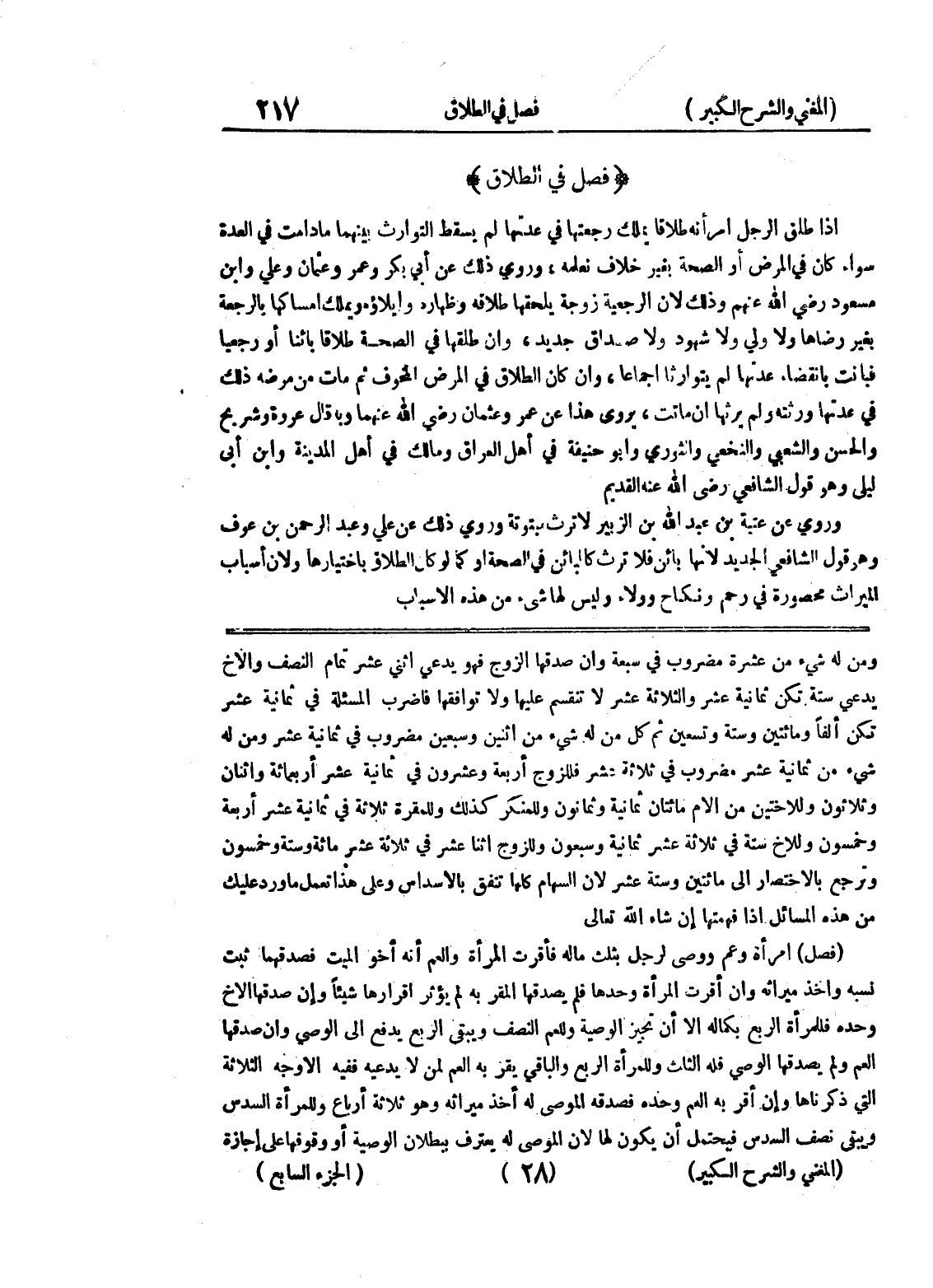 شئ من ثمانية عشر مضروب في ثلاثة عشر فللزوج أربعة وعشرون في ثمانية عشر أربعمائة واثنان وثلاثون وللأختين من الام مائتان ثمانية وثمانون وللمنكر كذلك وللمقرة ثلاثة في ثمانية عشر أربعة وخمسون وللأخ ستة في ثلاثة عشر ثمانية وسبعون وللزوج اثنا عشر في ثلاثة عشر مائة وستة وخمسون وترجع بالاختصار إلى مائتين وستة عشر لأن السهام كلها تتفق بالأسداس وعلى هذا تعمل ما ورد عليك من هذه المسائل إذا فهمتها إن شاء الله تعالى (فصل) امرأة وعم ووصى لرجل بثلث ماله فأقرت المرأة والعم أنه أخو الميت فصدقهما ثبت نسبه وأخذ ميراثه وإن أقرت المرأة وحدها فلم يصدقها المقر به لم يؤثر إقرارها شيئاً وإن صدقها الأخ وحده فللمرأة الربع بكماله إلا أن تجيز الوصية وللعم النصف ويبقى الربع يدفع إلى الوصي وإن صدقها العم ولم يصدقها الوصي فله الثلث وللمرأة الربع والباقي يقر به العم لمن لا يدعيه ففيه الأوجه الثلاثة التي ذكرناها وإن أقربه العم وحده فصدقه الموصى له أخذ ميراثه وهو ثلاثة أرباع وللمرأة السدس ويبقى نصف السدس فيحتمل أن يكون لها لأن الموصى له يعترف ببطلان الوصية أو وقوفها على إجازة