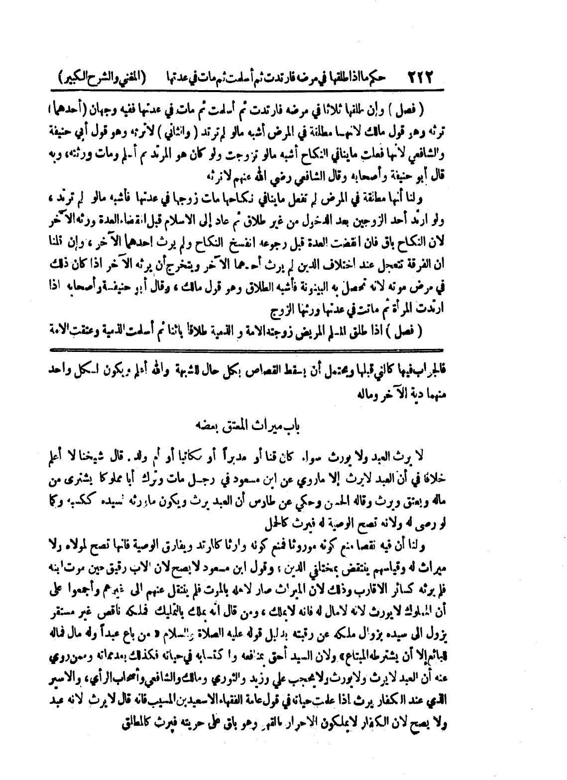 فالجواب فيها كالتي قبلها ويحتمل أن يسقط القصاص بكل حال للشبهة والله أعلم ويكون لكل واحد منهما دية الآخر وماله باب ميراث المعتق بعضه لا يرث العبد ولا يورث سواء كان قنا أو مدبراً أو مكاتباً أو أم ولد.