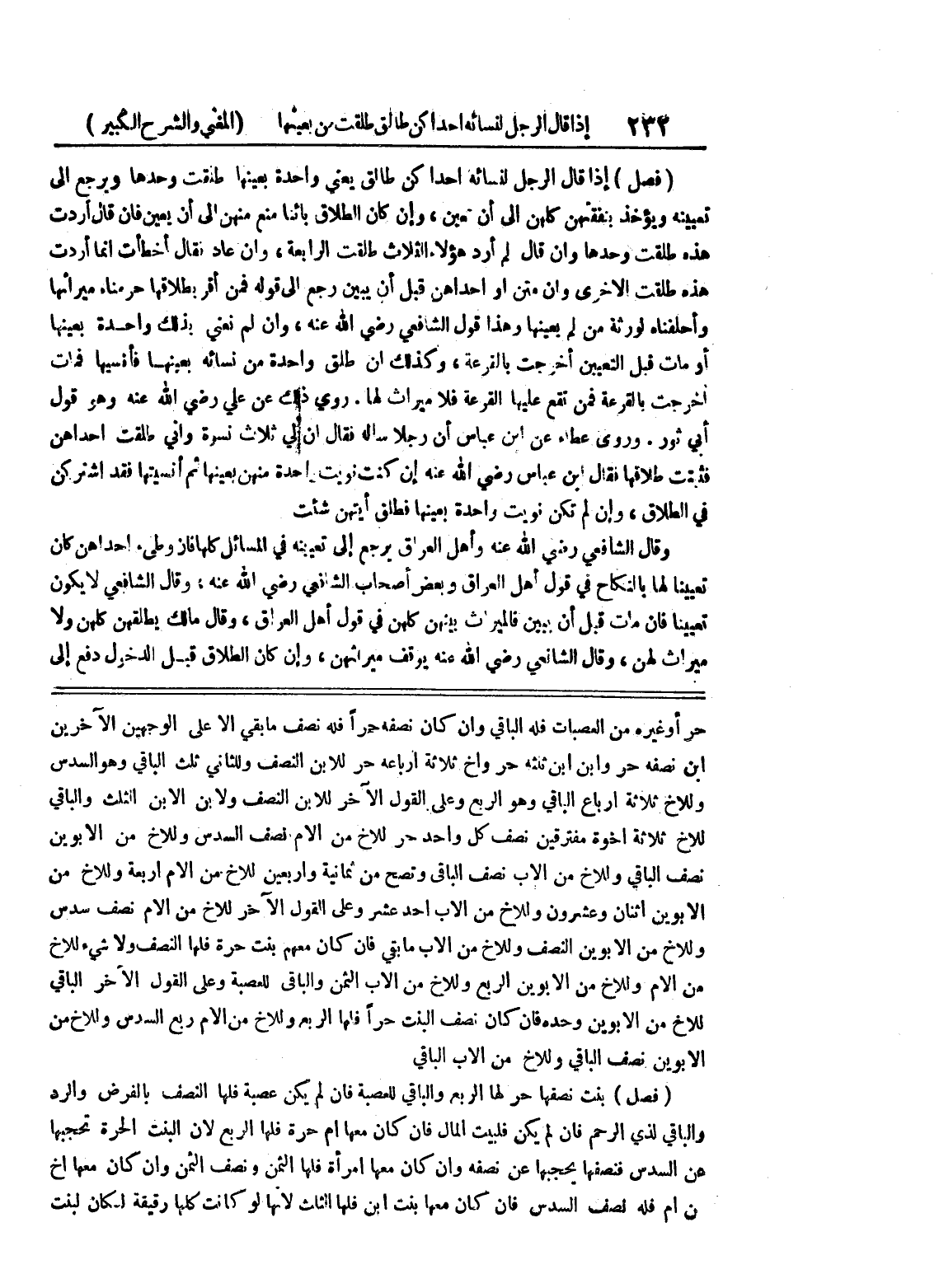 حر أو غيره من العصبات فله الباقي وإن كان نصفه حراً فله نصف ما بقي إلا على الوجهين الآخرين ابن نصفه حر وابن ابن ثلثه حر وأخ ثلاثة أرباعه حر للابن النصف وللثاني ثلث الباقي وهو السدس وللأخ ثلاثة أرباع الباقي وهو الربع وعلى القول الآخر للابن النصف ولابن الابن الثلث والباقي للأخ ثلاثة إخوة مفترقين نصف كل واحد حر للأخ من الأم نصف السدس وللأخ من الأبوين نصف الباقي وللأخ من الأب نصف الباقي وتصح من ثمانية وأربعين للأخ من الأم أربعة وللأخ من الأبوين اثنان وعشرون وللأخ من الأب أحد عشر وعلى القول الآخر للأخ من الأم نصف سدس وللأخ من الأبوين النصف وللأخ من الأب ما بقي فإن كان معهم بنت حرة فلها النصف ولا شئ للأخ من الأم وللأخ من الأبوين الربع وللأخ من الأب الثمن والباقي للعصبة وعلى القول الآخر الباقي للأخ من الأبوين وحده فإن كان نصف البنت حراً فلها الربع وللأخ من الأم ربع السدس وللأخ من الأبوين نصف الباقي وللأخ من الأب الباقي (فصل) بنت نصفها حر لها الربع والباقي للعصبة فإن لم يكن عصبة فلها النصف بالفرض والرد والباقي لذي الرحم فإن لم يكن فلبيت المال فإن كان معها أم حرة فلها الربع لأن البنت الحرة تحجبها عن السدس فنصفها يحجبها عن نصفه وإن كان معها امرأة فلها الثمن ونصف الثمن وإن كان معها أخ من أم فله نصف السدس فان كان معها بنت ابن فلها الثلث لأنها لو كانت كلها رقيقة لكان لبنت