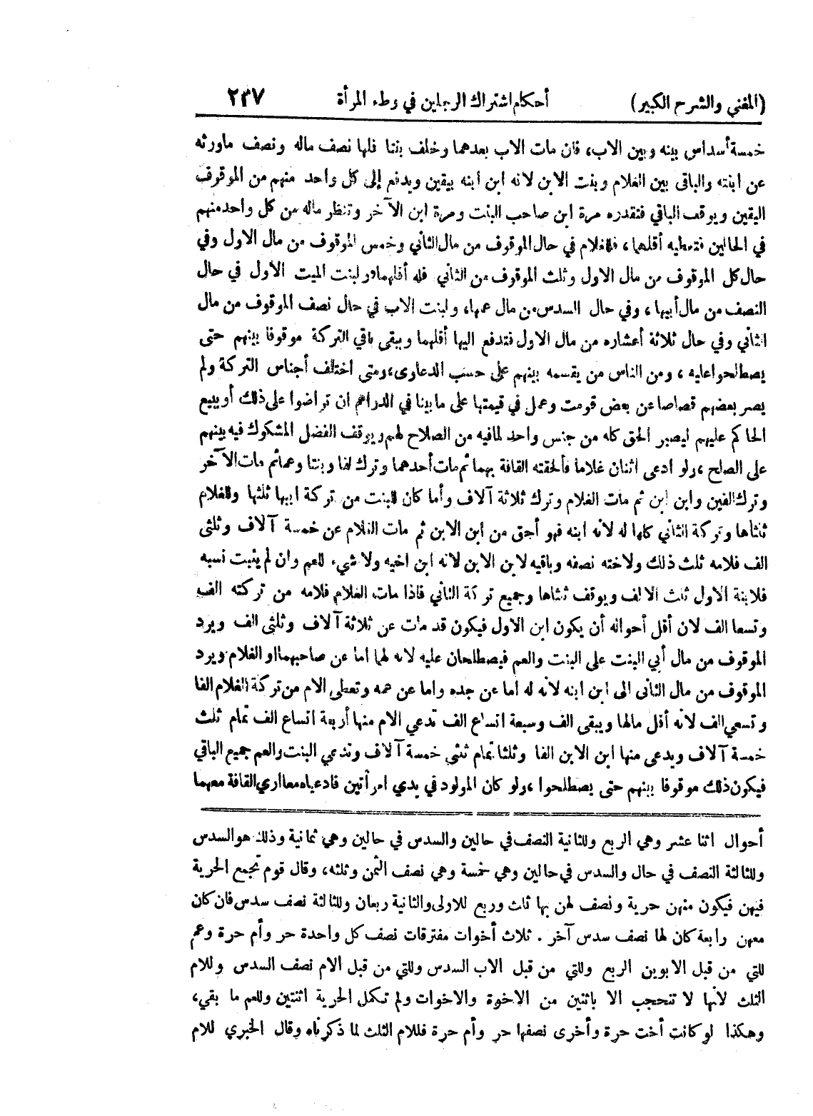 أحوال اثنا عشر وهي الربع وللثانية النصف في حالين والسدس في حالين وهي ثمانية وذلك هو السدس