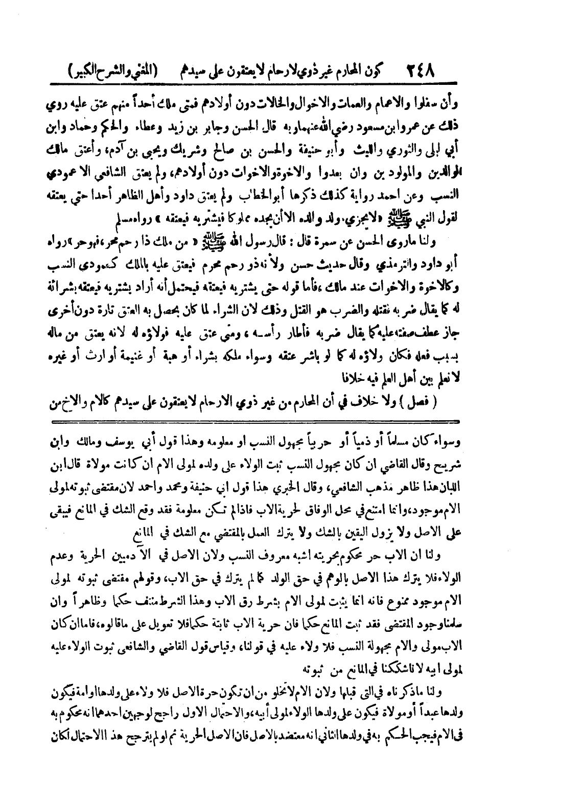 الأم موجود، وإنما امتنع في محل الوفاق لحرية الأب فإذا لم تكن معلومة فقد وقع الشك في المانع فيبقى على الأصل ولا يزول اليقين بالشك ولا يترك العمل بالمقتضي مع الشك في المانع ولنا أن الأب حر محكوم بحريته أشبه معروف النسب ولأن الأصل في الآدميين الحرية وعدم الولاء فلا يترك هذا الأصل بالوهم في حق الولد كما لم يترك في حق الأب، وقولهم مقتضى ثبوته لمولى الأم موجود ممنوع فإنه إنما يثبت لمولى الأم بشرط رق الأب وهذا الشرط منتف حكماً وظاهراً وإن سلمنا وجود المقتضى فقد ثبت المانع حكما فإن حرية الأب ثابتة حكماً فلا تعويل على ما قالوه، فأما إن كان الأب مولى والأم مجهولة النسب فلا ولاء عليه في قولنا، وقياس قول القاضي والشافعي ثبوت الولاء عليه لمولى أبيه لأنا شككنا في المانع من ثبوته ولنا ما ذكرناه في التي قبلها ولأن الأم لا تخلوا من أن تكون حرة الأصل فلا ولاء على ولدها أو أمة فيكون ولدها عبداً أو مولاة فيكون على ولدها الولاء لمولى أبيه، والاحتمال الأول راجح لوجهين أحدهما أنه محكوم به في الأم فيجب الحكم به في ولدها الثاني أنه معتضد بالأصل فإن الأصل الحرية ثم لو لم يترجح هذا الاحتمال لكان