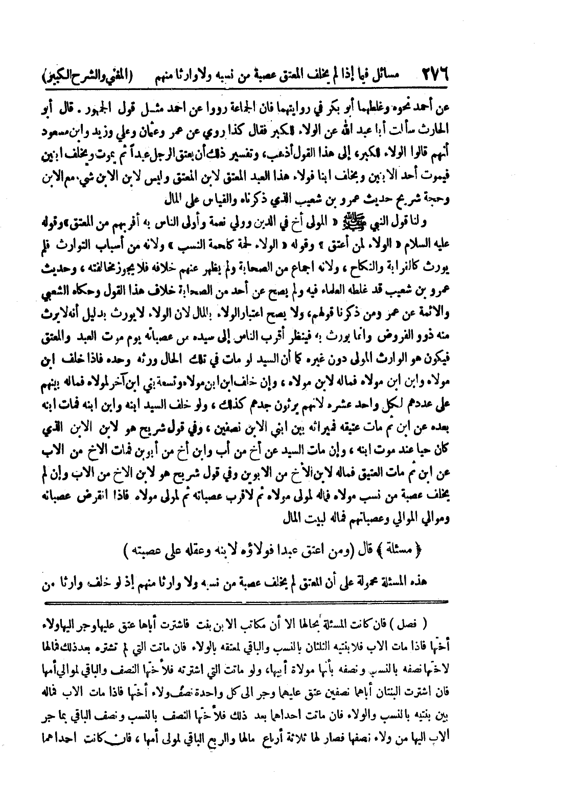 (فصل) فإن كانت المسألة بحالها إلا أن مكاتب الابن بنت فاشترت أباها عتق عليها وجر إليها ولاء أختها فإذا مات الأب فلابنتيه الثلثان بالنسب والباقي لمعتقه بالولاء فإن ماتت التي لم تشتره بعد ذلك فمالها لأختها نصفه بالنسب ونصفه بأنها مولاة أبيها، ولو ماتت التي اشترته فلأختها النصف والباقي لموالي أمها فإن اشترت البنتان أباهما نصفين عتق عليهما وجر إلى كل واحدة نصف ولاء أختها فإذا مات الأب فماله بين بنتيه بالنسب والولاء فإن ماتت إحداهما بعد ذلك فلأختها النصف بالنسب ونصف الباقي بما جر الأب إليها من ولاء نصفها فصار لها ثلاثة أرباع مالها والربع الباقي لمولى أمها، فإن كانت إحداهما