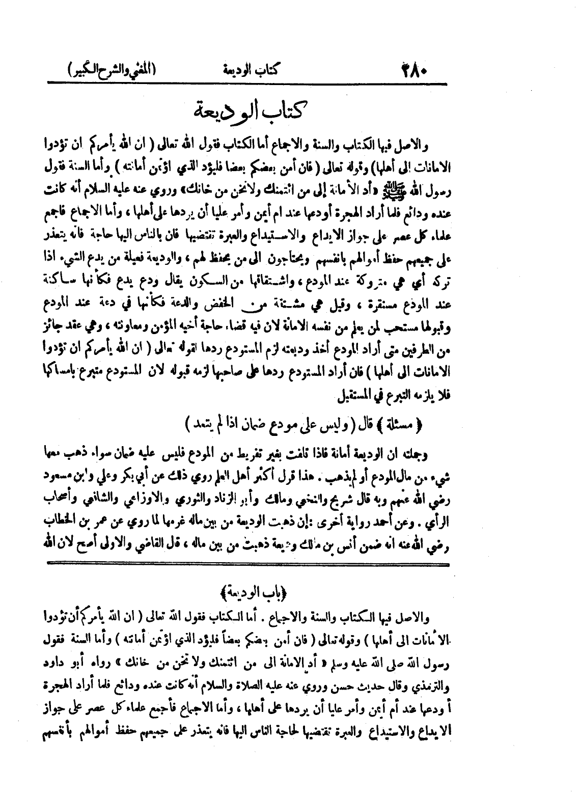 (باب الوديعة) والأصل فيها الكتاب والسنة والإجماع.