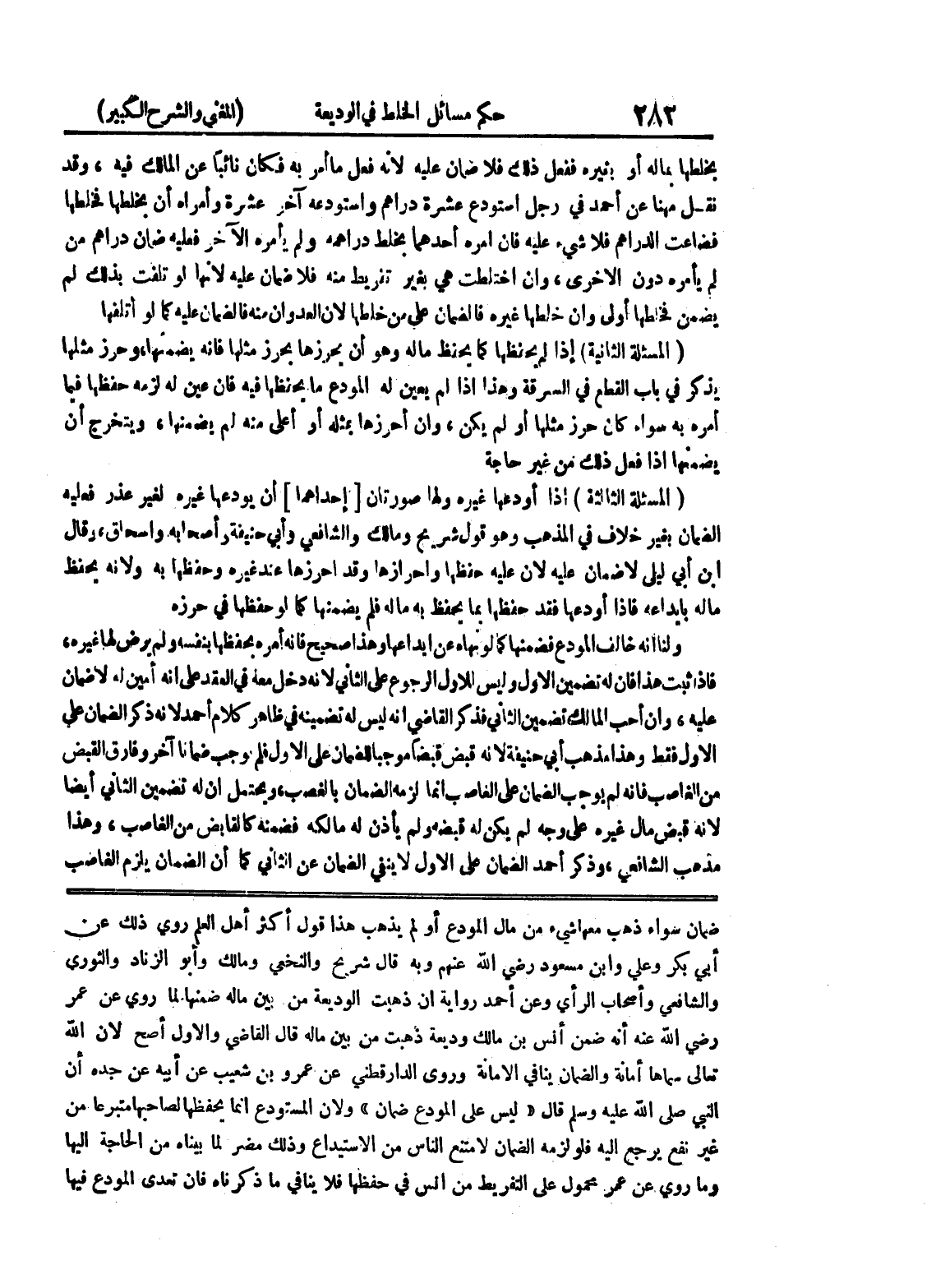 ضمان سواء ذهب معها شئ من مال المودع أو لم يذهب هذا قول أكثر أهل العلم روي ذلك عن أبي بكر وعلي وابن مسعود رضي الله عنهم وبه قال شريح والنخعي ومالك وأبو الزناد والثوري والشافعي وأصحاب الرأي وعن أحمد رواية إن ذهبت الوديعة من بين ماله ضمنها لما روي عن عمر رضي الله عنه أنه ضمن أنس بن مالك وديعة ذهبت من بين ماله قال القاضي والأول أصح لأن الله تعالى سماها أمانة والضمان ينافي الأمانة وروى الدارقطني عن عمرو بن شعيب عن أبيه عن جده أن النبي صلى الله عليه وسلم قال " ليس على المودع ضمان " ولأن المستودع إنما يحفظها لصاحبها متبرعا من غير نفع يرجع إليه فلو لزمه الضمان لامتنع الناس من الاستيداع وذلك مضر لما بيناه من الحاجة إليها وما روي عن عمر محمول على التفريط من أنس في حفظها فلا ينافي ما ذكرناه فإن تعدى المودع فيها
