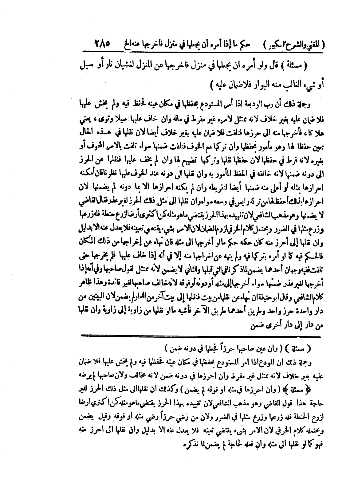 (مسألة) (وإن عين صاحبها حرزاً فجعلها في دونه ضمن) وجملة ذلك أن المودع إذا أمر المستودع يحفظها في مكان عينه فحفظها فيه ولم يخش عليها فلا ضمان عليه بغير خلاف لأنه ممتثل غير مفرط وإن أحرزها في دونه ضمن لأنه مخالف ولأن صاحبها لم يرضه (مسألة) (وإن أحرزها في مثله أو فوقه لم يضمن) وكذلك إن نقلها إلى مثل ذلك الحرز لغير حاجة هذا قول القاضي وهو مذهب الشافعي لأن تقييده بهذا الحرز يقتضي ما هو مثله كمن اكترى أرضا لزرع الحنطة فله زرعها وزرع مثلها في الضرر ولأن من رضي حرزاً رضي مثله أو فوقه وقيل يضمن ويحتمله كلام الخرقي لأن الامر بشئ يقتضي تعينه فلا يعدل عنه إلا بدليل وإن نقلها إلى أحرز منه