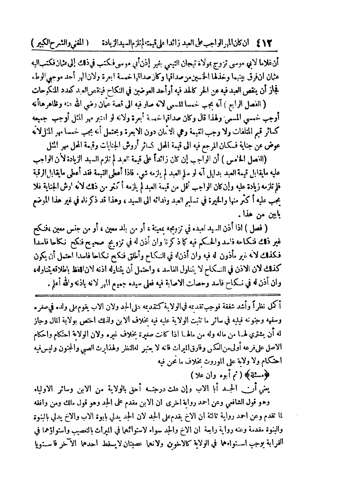 أكمل نظراً وأشد شفقة فوجب تقديمه في الولاية كتقديمه على الجد ولأن الأب يقوم على ولده في صغره وسفهه وجنونه فيليه في سائر ما تثبت الولاية عليه فيه بخلاف الابن ولذلك اختص بولاية المال وجاز له أن يشتري لها من ماله وله من مالها إذا كانت صغيرة بخلاف غيره ولأن الولاية احتكام وأحكام الأصل على فرعه أولى من العكس وفارق الميراث فإنه لا يعتبر له النظر ولهذا يرث الصبي والمجنون وليس فيه احتكام ولا ولاية على الموروث بخلاف ما نحن فيه (مسألة) (ثم أبوه وإن علا) يعني أن الجد أبا الأب وإن علت درجته أحق بالولاية من الابن وسائر الأولياء وهو قول الشافعي وعن أحمد رواية أخرى أن الابن مقدم على الجد وهو قول مالك ومن وافقه لما تقدم وعن أحمد رواية ثالثة أن الأخ يقدم على الجد لأن الجد يدلي بأبوة الأب والأخ يدلي بالبنوة والبنوة مقدمة وعنه رواية رابعة أن الأخ والجد سواء لاستوائهما في الميراث بالتعصيب واستواؤهما في القرابة يوجب استواءهما في الولاية كالأخوين ولأنهما عصبتان لا يسقط أحدهما الآخر فاستويا