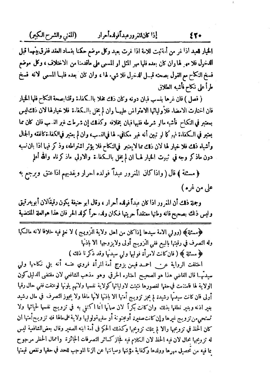 (مسألة) (وولي الأمة سيدها إذا كان من أهل ولاية التزويج) لا نعلم فيه خلافاً لأنه مالكها وله التصرف في رقبتها بالبيع ففي التزويج أولى ولا يزوجها إلا بإذنها (مسألة) (فإن كانت لامرأة فوليها ولي سيدتها وقد ذكرنا ذلك) اختلفت الرواية عن أحمد فيمن يزوج أمة المرأة فروي عنه أنه يلي نكاحها ولي سيدتها قال القاضي هذا هو الصحيح اختاره الخرقي وهو مذهب الشافعي لأن مقتضى الدليل كون
