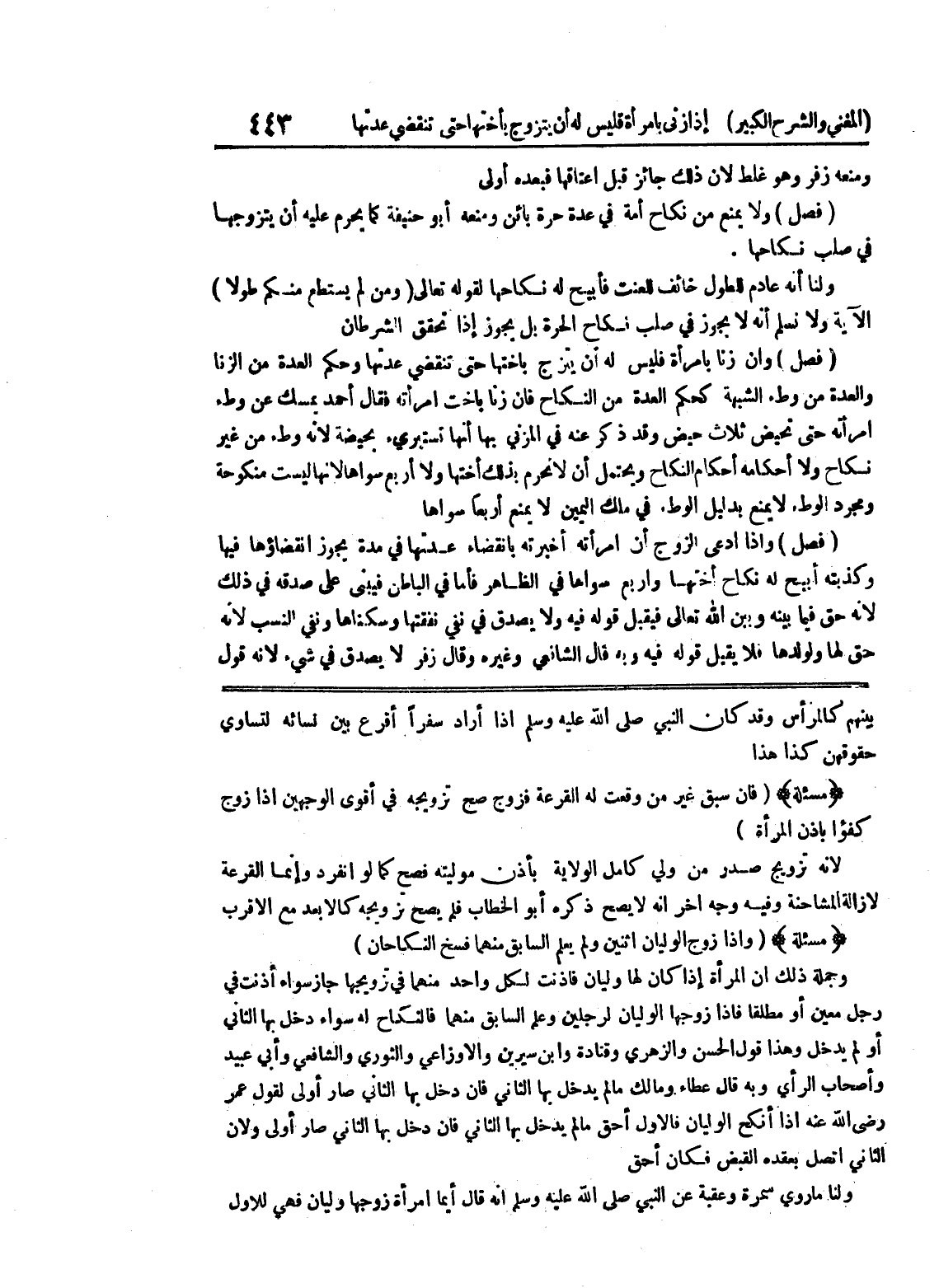 حقوقهن كذا هذا (مسألة) (فإن سبق غير من وقعت له القرعة فزوج صح تزويجه في أقوى الوجهين إذا زوج كفؤاً بإذن المرأة) لأنه تزويج صدر من ولي كامل الولاية بإذن موليته فصح كما لو انفرد وإنما القرعة لإزالة المشاحنة وفيه وجه آخر أنه لا يصح ذكره أبو الخطاب فلم يصح تزويجه كالأبعد مع الأقرب (مسألة) (وإذا زوج الوليان اثنين ولم يعلم السابق منهما فسخ النكاحان) وجملة ذلك أن المرأة إذا كان لها وليان فأذنت لكل واحد منهما في تزويجها جاز سواء أذنت في رجل معين أو مطلقاً فإذا زوجها الوليان لرجلين وعلم السابق منهما فالنكاح له سواء دخل بها الثاني أو لم يدخل وهذا قول الحسن والزهري وقتادة وابن سيرين والاوزاعي والثوري والشافعي وأبى عبيد وأصحاب الرأي وبه قال عطاء ومالك ما لم يدخل بها الثاني فإن دخل بها الثاني صار أولى لقول عمر رضي الله عنه إذا أنكح الوليان فالأول أحق ما لم يدخل بها الثاني فإن دخل بها الثاني صار أولى ولأن الثاني اتصل بعقده القبض فكان أحق ولنا ما روى سمرة وعقبة عن النبي صلى الله عليه وسلم أنه قال أيما امرأة زوجها وليان فهي للأول