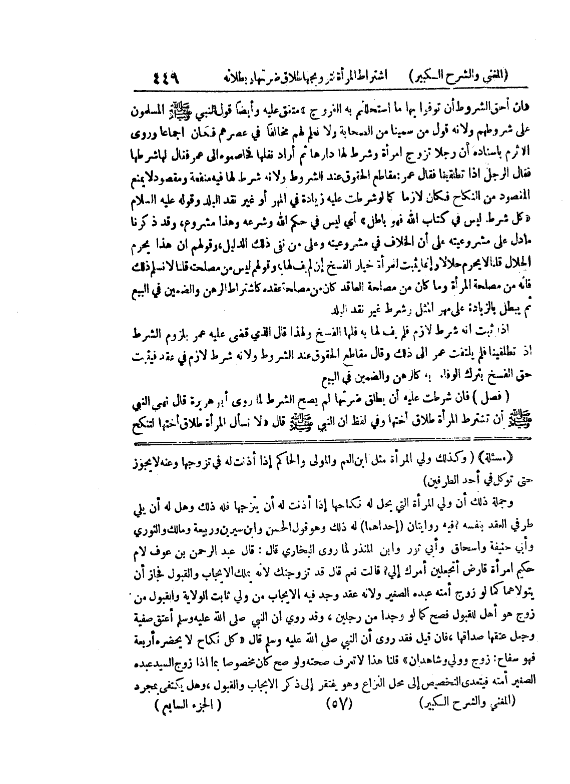 (مسألة) (وكذلك ولي المرأة مثل ابن العم والمولى والحاكم إذا أذنت له في تزوجها وعنه لا يجوز حتى توكل في أحد الطرفين) وجملة ذلك أن ولي المرأة التي يحل له نكاحها إذا أذنت له أن يتزوجها فله ذلك وهل له أن يلي طرفي العقد بنفسه؟ فيه روايتان (إحداهما) له ذلك وهو قول الحسن وابن سيرين وربيعة ومالك والثوري وأبي حنيفة واسحاق وأبي ثور وابن المنذر لما روى البخاري قال: قال عبد الرحمن بن عوف لأم حكيم امرأة قارض أتجعلين أمرك إلي؟ قالت نعم قال قد تزوجتك لأنه يملك الإيجاب والقبول فجاز أن يتولاهما كما لو زوج أمته عبده الصغير ولأنه عقد وجد فيه الإيجاب من ولي ثابت الولاية والقبول من زوج هو أهل للقبول فصح كما لو وجدا من رجلين، وقد روي أن النبي صلى الله عليه وسلم أعتق صفية وجعل عتقها صداقها، فإن قيل فقد روي أن النبي صلى الله عليه وسلم قال (كل نكاح لا يحضره أربعة فهو سفاح: زوج وولي وشاهدان) قلنا هذا لا تعرف صحته ولو صح كان مخصوصا بما إذا زوج السيد عبده الصغير أمته فيتعدى التخصيص إلى مح النزاع وهو يفتقر إلى ذكر الإيجاب والقول، وهل يكتفى بمجرد