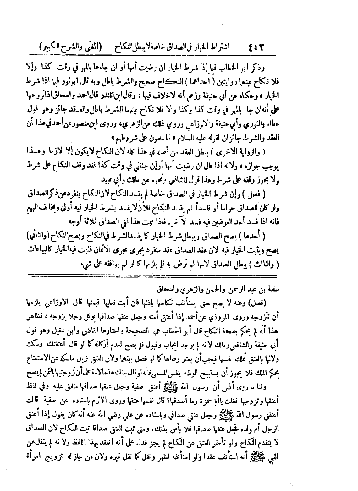 سنة بن عبد الرحمن والحسن والزهري واسحاق (فصل) وعنه لا يصح حتى يستأنف نكاحها بإذنها فإن أبت فعليها قيمتها قال الأوزاعي يلزمها أن تتزوجه وروى المروذي عن أحمد إذا أعتق أمته وجعل عتقها صداقها يوكل رجلا يزوجه، فظاهر هذا أنه لم يحكم بصحة النكاح قال أبو الخطاب هي الصحيحة واختارها القاضي وابن عقيل وهو قول أبي حنيفة والشافعي ومالك لأنه لم يوجد إيجاب وقبول فلم يصح لعدم أركانه كما لو قال أعتقتك وسكت ولأنها بالعتق تملك نفسها فيجب أن يعتبر رضهاها كما لو فصل بينهما ولأن العتق يزيل ملكه عن الاستمتاع