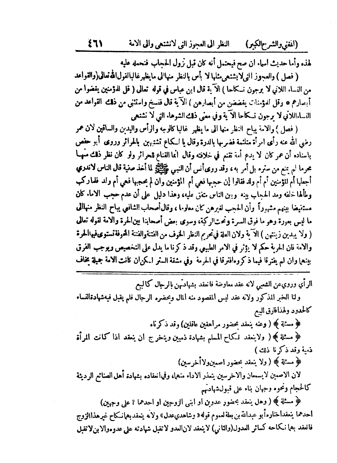 الرأي وروي عن الشعبي لأنه عقد معاوضة فانعقد بشهادتهن بالرجال كالبيع ولنا الخبر المذكور ولأنه عقد ليس المقصود منه المال ويحضره الرجال فلم يقبل فيه شهادة النساء كالحدود ولهذا فارق البيع (مسألة) (وعنه ينعقد بحضور مراهقين عاقلين) وقد ذكرناه (مسألة) (ولا ينعقد نكاح المسلم بشهادة ذميين ويتخرج أن ينعقد إذا كانت المرأة ذمية وقد ذكرنا ذلك) (مسألة) (ولا ينعقد بحضور أصمين ولا أخرسين) لأن الأصمين لا يسمعان والأخرسين يتعذر الأداء منهما، وفي انعقاده بشهادة أهل الصنائع الرديئة كالحجام ونحو وجهان بناء على قبول شهادتهم (مسألة) (وهل ينعقد بحضور عدوين أو ابني الزوجين أو أحدهما؟ على وجهين) أحدهما ينعقد اختاره أبو عبد الله بن بطة لعموم قوله (وشاهدي عدل) ولأنه ينعقد بهما نكاح غير هذا الزوج فانعقد بهما نكاحه كسائر العدول (والثاني) لا ينعقد لأن العدو لا تقبل شهادته على عدوه والابن لا تقبل