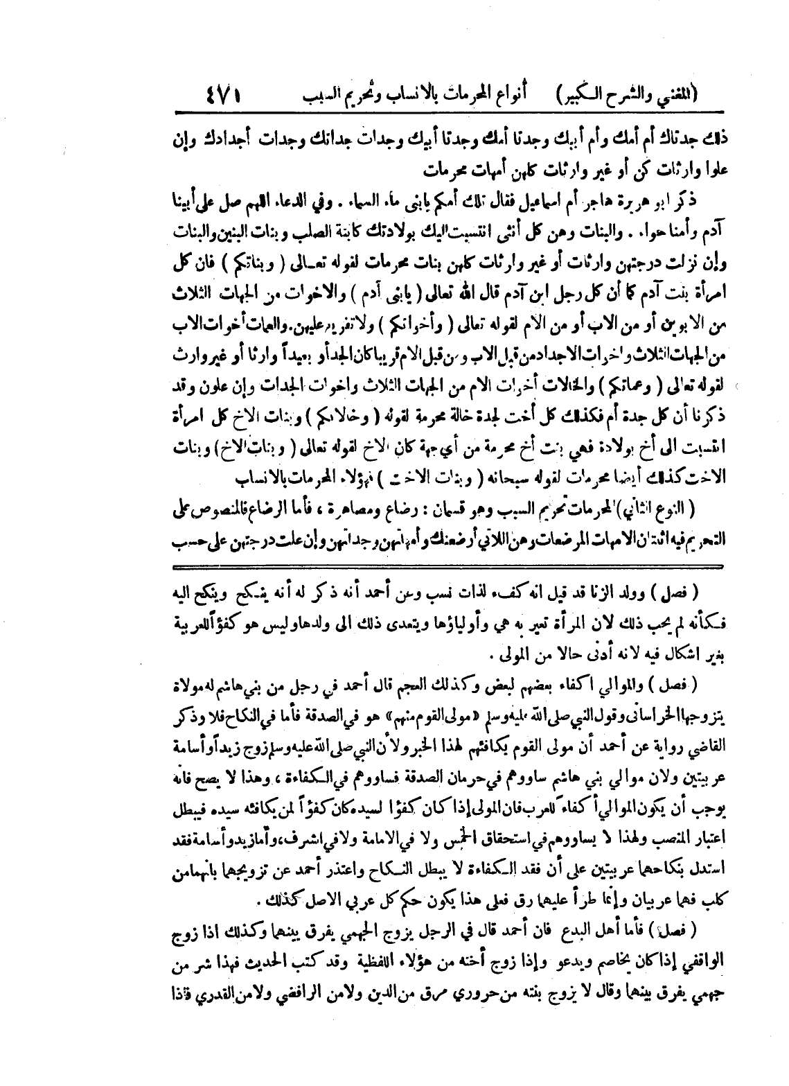 (فصل) وولد الزنا قد قيل انه كفء لذات نسب وعن أحمد أنه ذكر له أنه ينكح وينكح إليه فكأنه لم يجب ذلك لأن المرأة تعير به وهي وأولياؤها ويتعدى ذلك إلى ولدها وليس هو كفؤ للعربية بغير إشكال فيه لأنه أدنى حالا من المولى.