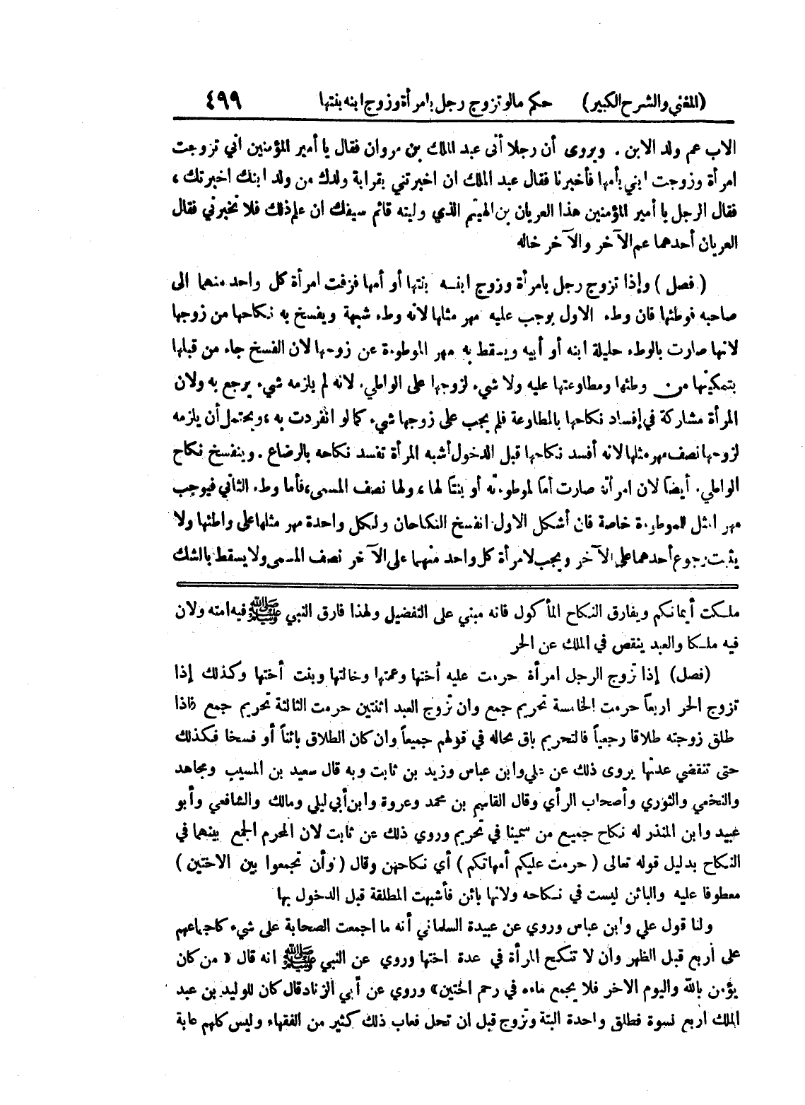 (فصل) إذا تزوج الرجل امرأة حرمت عليه أختها وعمتها وخالتها وبنت أختها وكذلك إذا تزوج الحر أربعاً حرمت الخامسة تحريم جمع وإن تزوج العبد اثنتين حرمت الثالثة تحريم جمع فإذا طلق زوجته طلاقا رجعياً فالتحريم باق بحاله في قولهم جميعاً وإن كان الطلاق بائناً أو فسخا فكذلك حتى تنقضي عدتها يروي ذلك عن علي وابن عباس وزيد بن ثابت وبه قال سعيد بن المسيب ومجاهد والنخعي والثوري وأصحاب الرأي وقال القاسم بن محمد وعروة وابن أبي ليلى ومالك والشافعي وأبو عبيد وابن المنذر له نكاح جميع من سمينا في تحريم وروي ذلك عن ثابت لأن المحرم الجمع بينهما في النكاح بدليل قوله تعالى (حرمت عليكم أمهاتكم) أي نكاحهن وقال (وأن تجمعوا بين الأختين) معطوفا عليه والبائن ليست في نكاحه ولأنها بائن فأشبهت المطلقة قبل الدخول بها ولنا قول علي وابن عباس وروي عن عبيدة السلماني أنه ما أجمعت الصحابة على شئ كإجماعهم على أربع قبل الظهر وأن لا تنكح المرأة في عدة أختها وروي عن النبي صلى الله عليه وسلم أنه قال (من كان يؤمن بالله واليوم الآخر فلا يجمع ماءه في رحم أختين) وروي عن أبي الزناد قال كان للوليد بن عبد الملك أربع نسوة فطلق واحدة البتة وتزوج قبل أن تحل فعاب ذلك كثير من الفقهاء وليس كلهم عابه