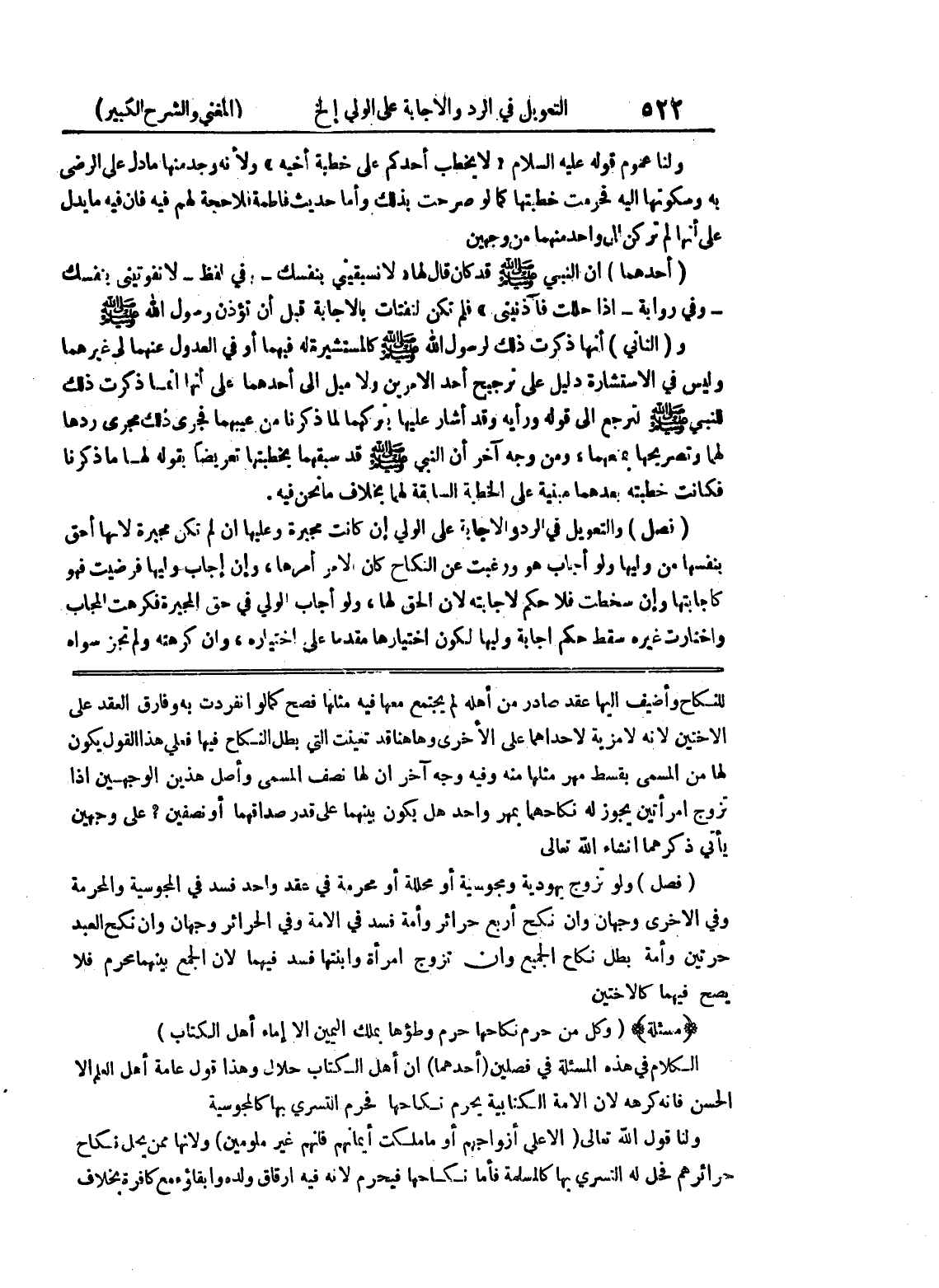 للنكاح وأضيف إليها عقد صادر من أهله لم يجتمع معها فيه مثلها فصح كما لو انفردت به وفارق العقد على الأختين لأنه لا مزية لإحداهما على الأخرى وهاهنا قد تعينت التي بطل النكاح فيها فعلى هذا القول يكون لها من المسمى بقسط مهر مثلها منه وفيه وجه آخر أن لها نصف المسمى وأصل هذين الوجهين إذا تزوج امرأتين يجوز له نكاحهما بمهر واحد هل يكون بينهما على قدر صداقهما أو نصفين؟ على وجهين يأتي ذكر هما انشاء الله تعالى (فصل) ولو تزوج يهودية ومجوسية أو محللة أو محرمة في عقد واحد فسد في المجوسية والمحرمة وفي الأخرى وجهان وإن نكح أربع حرائر وأمة فسد في الأمة وفي الحرائر وجهان وإن نكح العبد حرتين وأمة بطل نكاح الجميع وإن تزوج امرأة وابنتها فسد فيهما لأن الجمع بينهما محرم فلا يصح فيهما كالأختين (مسألة) (وكل من حرم نكاحها حرم وطؤها بملك اليمين إلا إماء أهل الكتاب) الكلام في هذه المسألة في فصلين (أحدهما) إن أهل الكتاب حلال وهذا قول عامة أهل العلم إلا الحسن فإنه كرهه لأن الأمة الكتابية يحرم نكاحها فحرم التسري بها كالمجوسية ولنا قول الله تعالى (إلا على أزواجهم أو ما ملكت أيمانهم فإنهم غير ملومين) ولأنها ممن يحل نكاح حرائرهم فحل له التسري بها كالمسلمة فأما نكاحها فيحرم لأنه فيه ارقاق ولده وابقاءوه مع كافرة بخلاف