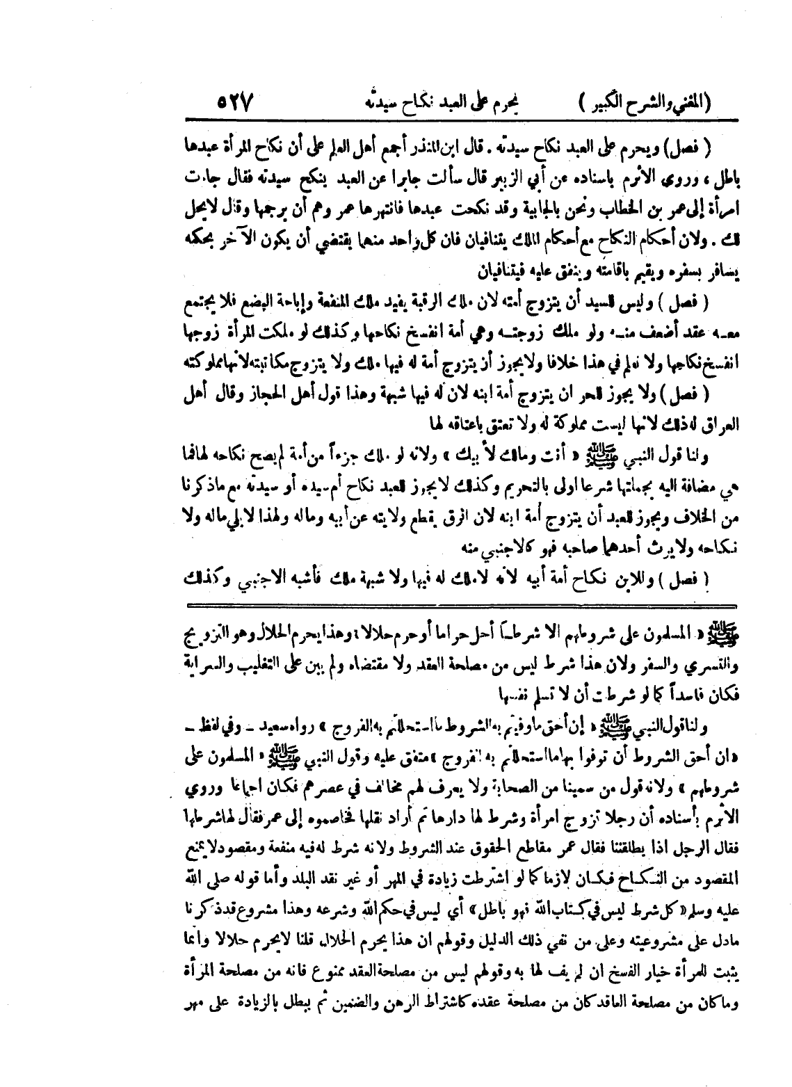 صلى الله عليه وسلم (المسلمون على شروطهم إلا شرطاً أحل حراماً أو حرم حلالاً) وهذا يحرم الحلال وهو التزويج والتسري والسفر ولأن هذا شرط ليس من مصلحة العقد ولا مقتضاه ولم بين على التغليب والسراية فكان فاسداً كما لو شرطت أن لا تسلم نفسها ولنا قول النبي صلى الله عليه وسلم (إن أحق ما وفيتم به الشروط ما استحللتم به الفروج) رواه سعيد - وفي لفظ - (أن أحق الشروط أن توفوا بهاما استحللتم به الفروج)) متفق عليه وقول النبي صلى الله عليه وسلم (المسلمون على شروطهم) ولأنه قول من سمنيا من الصحابة ولا يعرف لهم مخالف في عصرهم فكان إجماعاً وروى الأثرم باسناده أن رجلاً تزوج امرأة وشرط لها دارها ثم أراد نقلها فخاصموه الى عمر فقال لها شرطها فقال الرجل إذاً يطلقننا فقال عمر مقاطع الحقوق عند الشروط ولأنه شرط له فيه منفعة ومقصود لا يمنع المقصود من النكاح فكان لازماً كما لو اشترطت زيادة في المهر أو غير نقد البلد وأما قوله صلى الله عليه وسلم (كل شرط ليس في كتاب الله فهو باطل) أي ليس في حكم الله وشرعه وهذا مشروع قد ذكرنا ما دل على مشروعيته وعلى من نفى ذلك الدليل وقولهم إن هذا يحرم الحلال قلنا لا يحرم حلالا وإنما