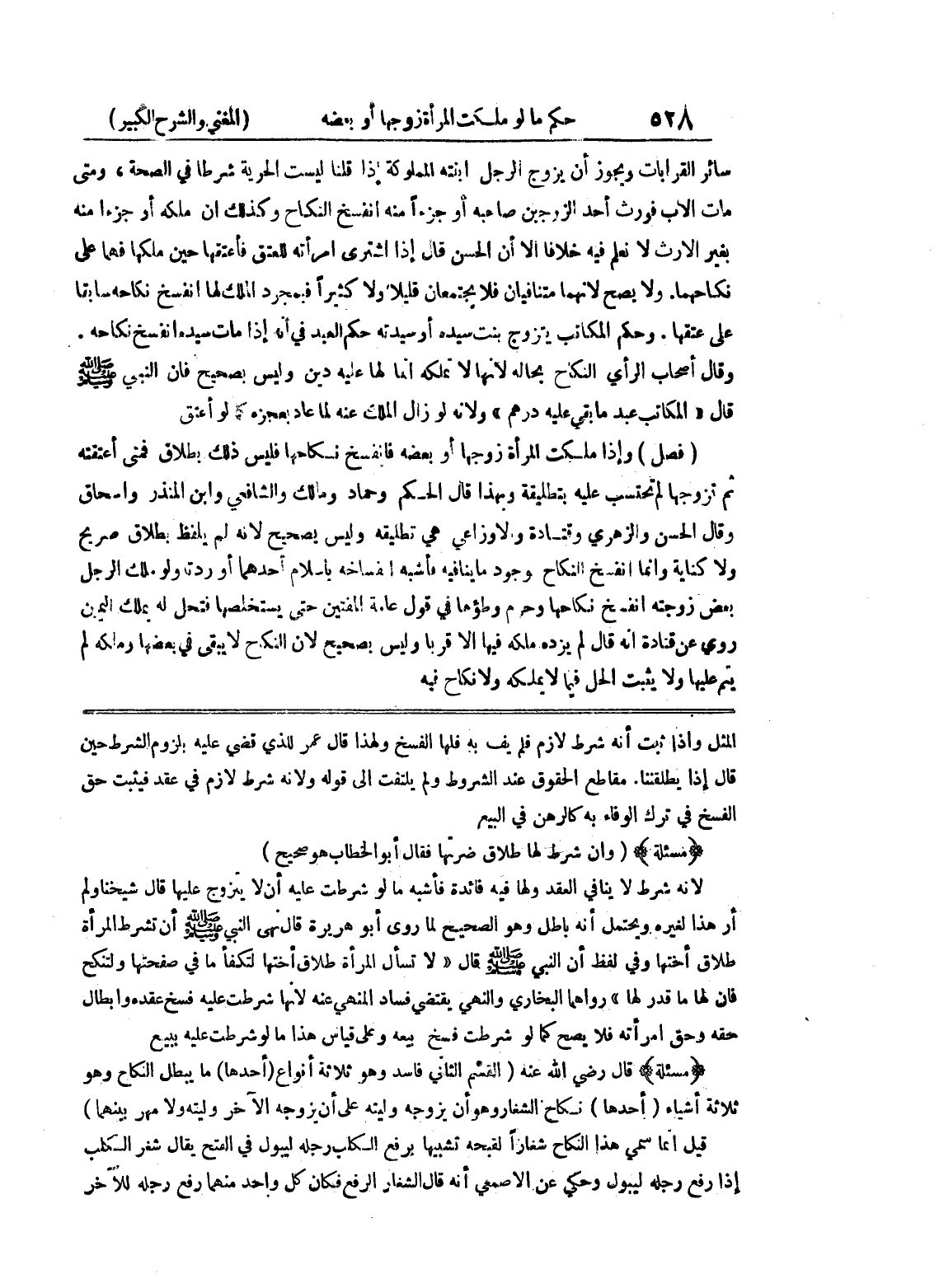 المثل وإذا ثبت أنه شرط لازم فلم يف به فلها الفسخ ولهذا قال عمر للذي قضى عليه بلزوم الشرط حين قال إذا يطلقننا مقاطع الحقوق عند الشروط ولم يلتفت إلى قوله ولأنه شرط لازم في عقد فيثبت حق الفسخ في ترك الوفاء به كالرهن في البيع (مسألة) (وإن شرط لها طلاق ضرتها فقال أبو الخطاب هو صحيح) لأنه شرط لا ينافي العقد ولها فيه فائدة فأشبه ما لو شرطت عليه أن لا يتزوج عليها قال شيخنا ولم أر هذا لغيره ويحتمل إنه باطل وهو الصحيح لما روى أبو هريرة قال نهى النبي صلى الله عليه وسلم أن تشرط المرأة طلاق أختها وفي لفظ أن النبي صلى الله عليه وسلم قال (تسأل المرأة طلاق أختها لتكفأ ما في صفحتها ولتنكح فإن لها ما قدر لها) رواهما البخاري والنهي يقتضي فساد المنهي عنه لانها شرطت عيه فسخ عقده وإبطال حقه وحق امرأته فلا يصح كما لو شرطت فسخ بيعه وعلى قياس هذا ما لو شرطت عليه ببيع (مسألة) قال رضي الله عنه (القسم الثاني فاسد وهو ثلاثة أنواع (أحدهما) ما يبطل النكاح وهو ثلاثة أشياء (أحدها) نكاح الشغار وهو أن يتزوجه وليته على أو يزوجه الآخر وليته ولا مهر بينهما) قيل إنما سمي هذا النكاح شغاراً لقبحه تشبيها برفع الكلب رجله ليبول في الفتح يقال شغر الكلب إذا رفع رجله ليبول وحكي عن الأصمعي أنه قال الشغار الرفع فكان كل واحد منهما رفع رجله للآخر