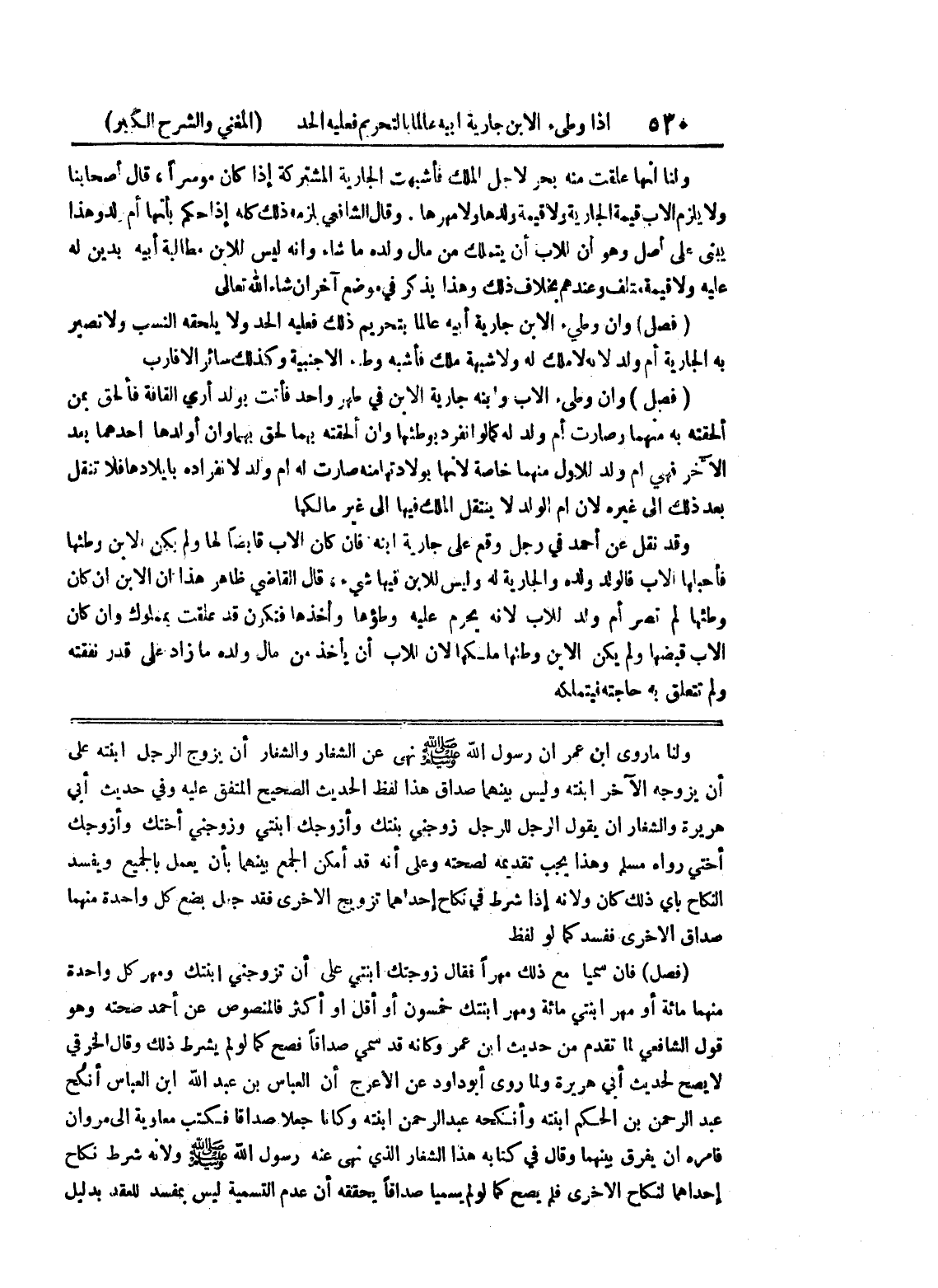 ولنا ما روى ابن عمر أن رسول الله صلى الله عليه وسلم نهى عن الشغار والشغار أن يزوج الرجل ابنته على أن يزوجه الآخر ابنته وليس بينهما صداق هذا لفظ الحديث الصحيح المتفق عليه وفي حديث أبي هريرة والشغار أن يقول الرجل للرجل زوجني بنتك وأزوجك ابنتي وزوجني أختك وأزوجك أختي رواه مسلم وهذا يجب تقديمه لصحته وعلى أنه قد أمكن الجمع بينهما بأن يعمل بالجميع ويفسد النكاح بأي ذلك كان ولأنه إذا شرط في نكاح إحداهما تزويج الأخرى فقد جعل بضع كل واحدة منهما صداق الأخرى ففسد كما لو لفظ (فصل) فإن سميا مع ذلك مهراً فقال زوجتك ابنتي على أن تزوجني ابنتك ومهر كل واحدة منهما مائة أو مهر ابنتي مائة ومهر ابنتك خمسون أو أقل أو أكثر فالمنصوص عن أحمد صحته وهو قول الشافعي لما تقدم من حديث ابن عمر وكانه قد سمي صداقاً فصح كما لو لم يشرط ذلك وقال الخرقي لا يصح لحديث أبي هرريرة ولما روى أبو داود عن الأعرج أن العباس بن عبد الله ابن العباس أنكح عبد الرحمن بن الحكم ابنته وأنكحه عبد الرحمن ابنته وكانا جعلا صداقاً فكتب معاوية إلى مروان فأمره أن يفرق بينهما وقال في كتابه هذا الشغار الذي نهى عنه رسول الله صلى الله عليه وسلم ولأنه شرط نكاح إحداهما لنكاح الأخرى فلم يصح كما لو لم يسيميا صداقاً يحققه أن عدم التسمية ليس بمفسد للعقد بدليل