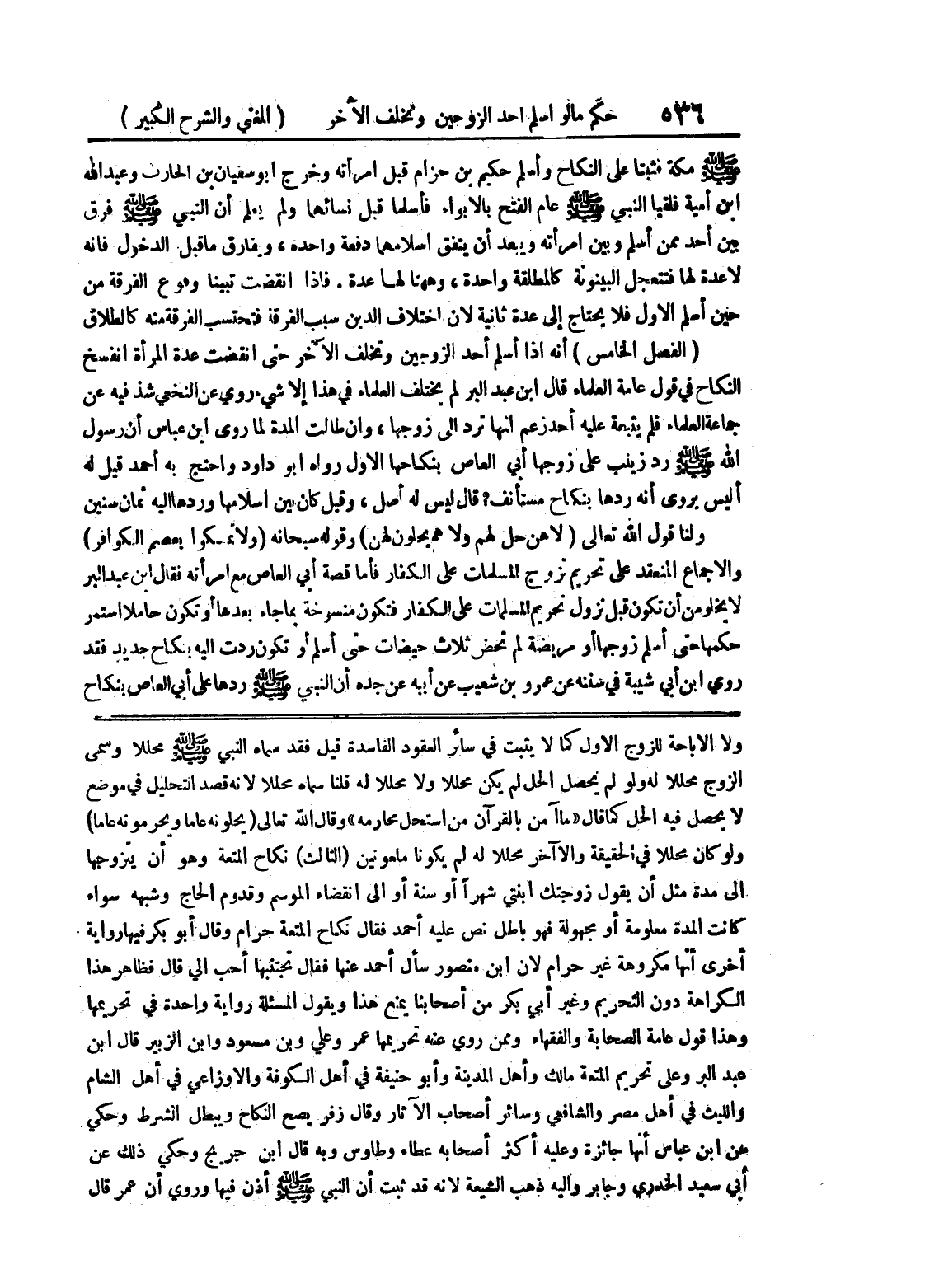 ولا الإباحة للزوج الأول كما لا يثبت في سائر العقود الفاسدة قيل فقد سماه النبي صلى الله عليه وسلم محللا وسمى الزوج محللا له ولو لم يحصل الحل لم يكن محللا ولا محللا له قلنا سماه محللا لأنه قصد التحليل في موضع لا يحصل فيه الحل كما قال (ما آمن بالقرآن من استحل محارمه)) وقال الله تعالى (يحلونه عاما ويحرمونه عاماً) ولو كان محللا في الحقيقة والا آخر محللا له لم يكونا ملعونين (الثالث) نكاح المتعة وهو وأن يتزوجها إلى مدة مثل أن يقول زوجتك ابنتي شهراً أو سنه أو إلى انقضاه الموسم وقدوم الحاج وشبهه سواء كانت المدة معلومة أو مجهولة فهو باطل نص عليه أحمد فقال نكاح المتععة حرام وقال أبو بكر فيها رواية أخرى أنها مكروهة غير حرام لأن ابن منصور سأل أحمد عنها فقال تجتنبها أحب إلي قال فظاهر هذا الكراهة دون التحريم وغير أبي بكر من أصحابنا بمنع هذا ويقول المسألة رواية واحدة في تحريمها وهذا قول عامة الصحابة والفقهاء ومم روي عنه تحريمها عمر وعلي وبن مسعود وابن الزبير قال ابن
