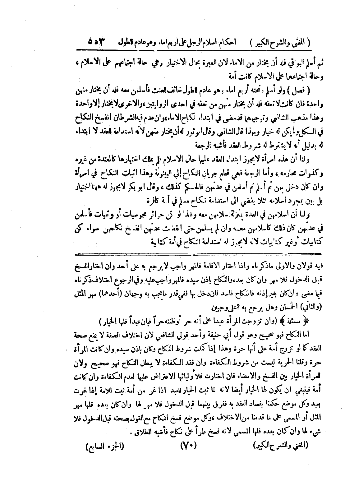 فيه قولان والأولى ما ذكرناه وإذا اختار الإقامة فالمهر واجب لا يرجع به على أحد وإن اختار الفسخ قبل الدخول فلا مهر وإن كان بعده والنكاح بإذن سيده فالمهر واجب عليه وفي الرجوع اختلاف ذكرناه فيما مضى وإن كان بغير إذنه فالنكاح فاسد فإن دخل بها ففي قدر ما يجب به وجهان (أحدهما) مهر المثل (والثاني) الخمسان وهل يرجع به؟ على وجهين (مسألة) (وإن تزوجت المرأة عبداً على أنه حر أو ظنته حراً فبان عبداً فلها الخيار)