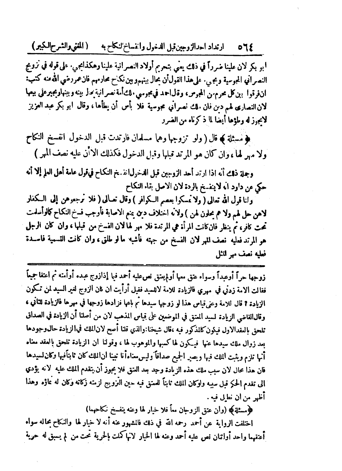 (مسألة) (وإن عتق الزوجان معاً فلا خيار لها وعنه ينفسخ نكاحهما) اختلفت الرواية عن أحمد رحمه الله في ذلك فالمشهور عنه أنه لا خيار لها والنكاح بحاله سواء أعتقهما واحد أو اثنان نص عليه أحمد وعنه لها الخيار لأنها كملت بالحرية تحت من لم يسبق لم حرية