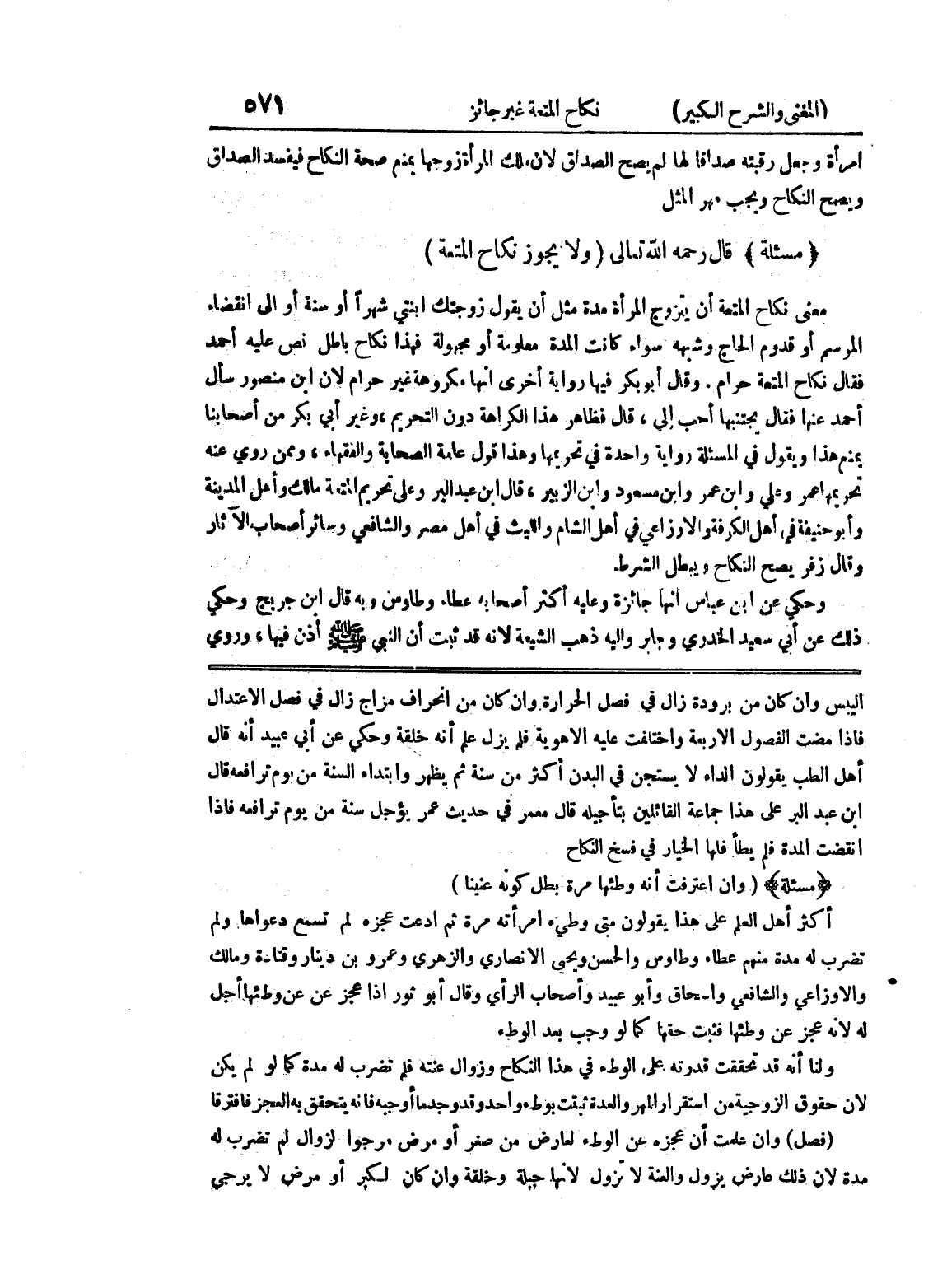 اليبس وإن كان من برودة زال، في فصل الحرارة وإن كان من انحراف مزاج زال في فصل الاعتدال فإذا مضت الفصول الأربعة واختلفت عليه الأهوية فلم يزل علم أنه خلقة وحكي عن أبي عبيد أنه قال أهل الطب يقولون الداء لا يستجن في البدن أكثر من سنة ثم يظهر وابتداء السنة من يوم ترافعه قال ابن عبد البر على هذا جماعة القائلين بتأجيله قال معمر في حديث عمر يؤجل سنة من يوم ترافعه فإذا انضت المدة فلم يطأ فلها الخيار في فسخ النكاح (مسألة) (وأن اعترفت أنه وطئها مرة بطل كونه عنيناً) أكثر أهل العلم على هذا يقولون متى وطئ امرأته مرة ثم ادعت عجزه لم تسمع دعواها ولم تضرب له مدة منهم عطاء وطاوس والحسن ويحيى الانصاري والزهري وعمرو بن دينار وقتادة ومالك