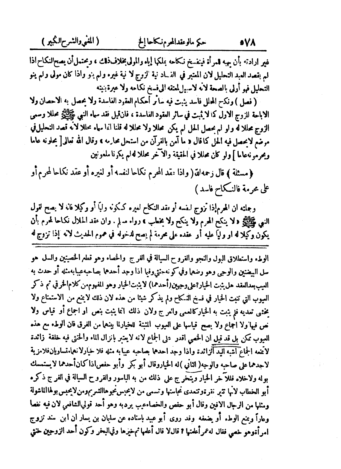 الوطئ واستطلاق البول والنجو والقروح السيالة في الفرج والخصاء وهو قطع الخصيتين والسل هو سل البيضتين والوجى وهو رضهما وفي كونه حنثي وفيما إذ وجد أحدهما بصاحبه عيبابه مثله أو حدث به العيب بعد العقد هل يثبت الخيار؟ على وجهين (أحدهما) لا يثبت الخيار وهو المفهوم من كلام الخرقي ثم ذكر العيوب التي تتبت الخيار في فسخ النكاح ولم يذكر شيئاً من هذه لأن ذلك لا يمنع من الاستمتاع ولا يخشى تعديه فلم يثبت به الخيار كالعمى والعرج ولأن ذلك إنما يثبت بنص أو إجماع أو قياس ولا نص فيها ولا إجماع ولا يصح قياسها على العيوب المثبتة للخيار لما بينهما من الفرق فان الوطئ مع هذه العيوب ممكن بل قد قيل أن الخصي أقدر على الجماع لأنه لا يعتبر بإنزال الماء والخنثى فيه خلقة زائدة لا تمنعه الجماع أشبه اليد الزائدة وإذا وجد أحدهما بصاحبه عيبا به مثله فلا خيار لأنهما متساويان فلا مزية لأحدهما على صاحبه والوجه (الثاني) له الخيار وقال أبو بكر وأبو حفص إذا كان أحدهما لا يستمسك بوله ولا خلاه فللآخر الخيار ويتخرج على ذلك من به الباسور القروح السيالة في الفرج ذكره أبو الخطاب لأنها تثير نقرة وتتعدى نجاستها وتسمى من لا يحبس نجوها الشريم ومن لا يحبس بولها الماشولة ومثلها من الرجال الأفين وقال أبو حفص والخصاء عيب يردبه وهو أحد قولي الشافعي لأن فيه نفصا وعارا ويمنع الوطئ أو يضعفه وقد روى أبو عبيد بإسناده عن سليمان بن يسار أن ابن سند تزوج امرأة وهو خصي فقال له عمر أعلمتها؟ قال لاقال أعلمها ثم خيرها وفي البخر وكون أحد الزوجين خنثى