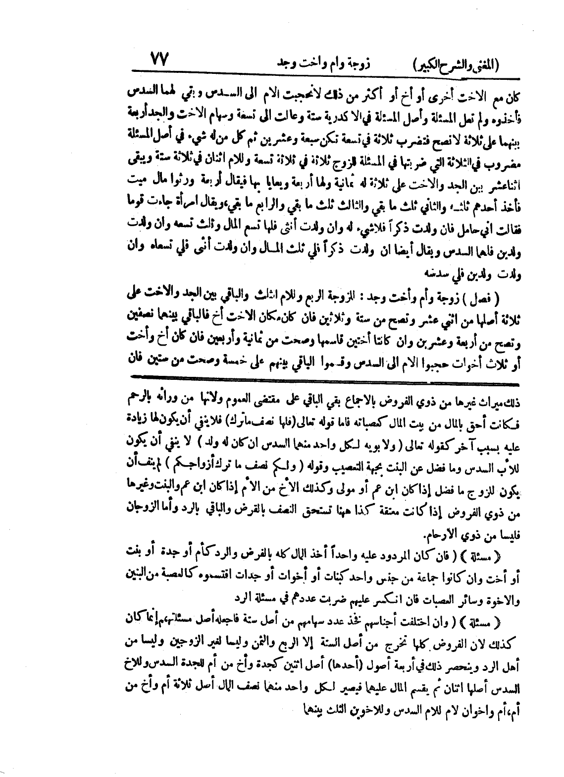 (مسألة) (فإن كان المردود عليه واحداً أخذ المال كله بالفرض والرد كأم أو جده أو بنت أو أخت وإن كانوا جماعة من جنس واحد كبنات أو أخوات أو جدات اقتسموه كالعصبة من البنين