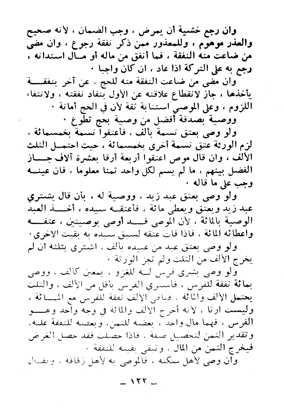 ولو وصى بشرى فرس له للغزو، بمعين كألف، ووصى بمائة نفقة للفرس، فاشترى الفرس بأقل من الألف، والثلث يحتمل الألف والمائة، فباقي الالف نفقة للفرس مع المائة، وليست إرثًا؛ لأنه أخرج الألف والمائة في وجه واحد وهو الفرس، فهما مال واحد بعضه للثمن، وبعضها للنفقة عليه، وتقدير الثمن من المال، وتبقى بقيته للنفقة.